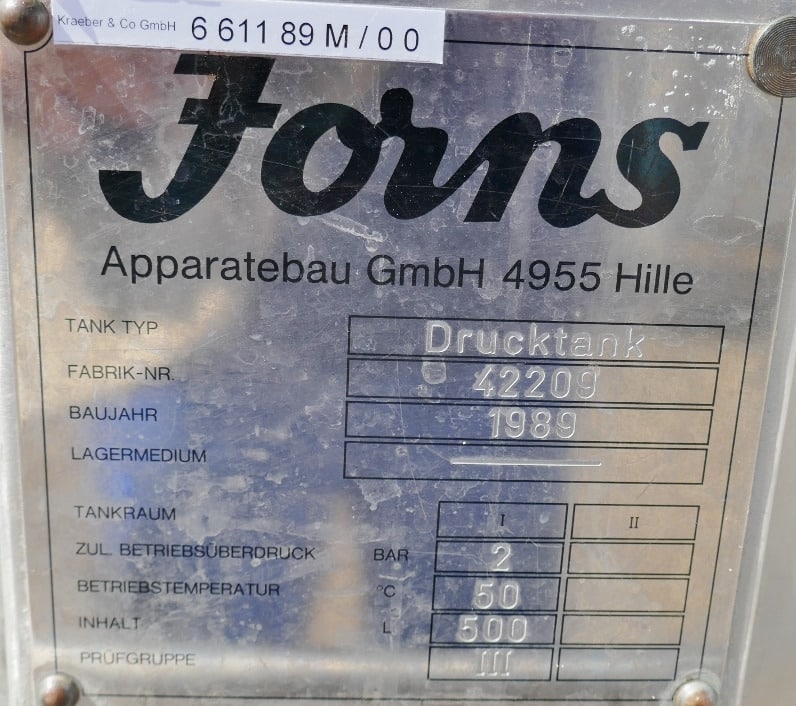 500 liter tank i Syrafast 316