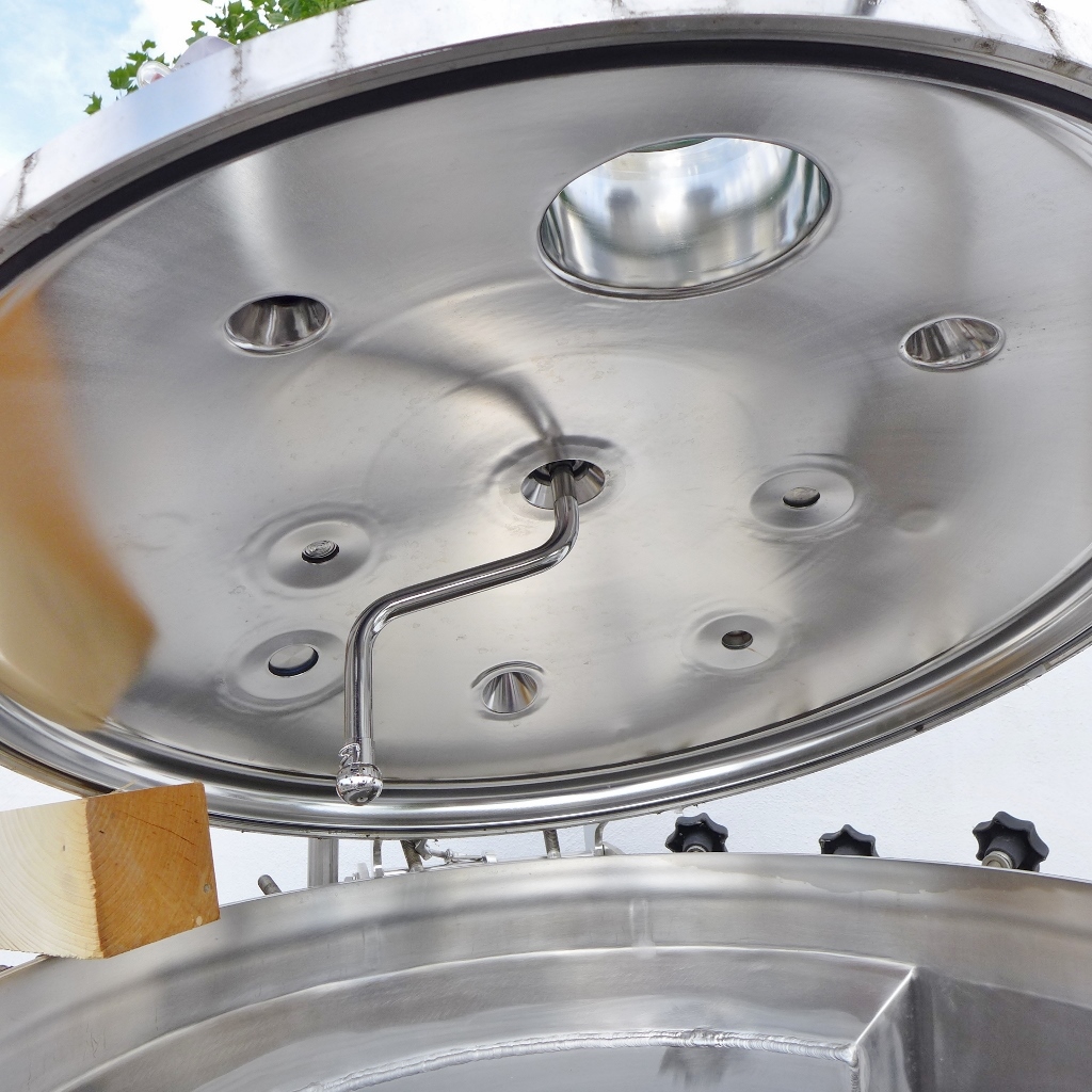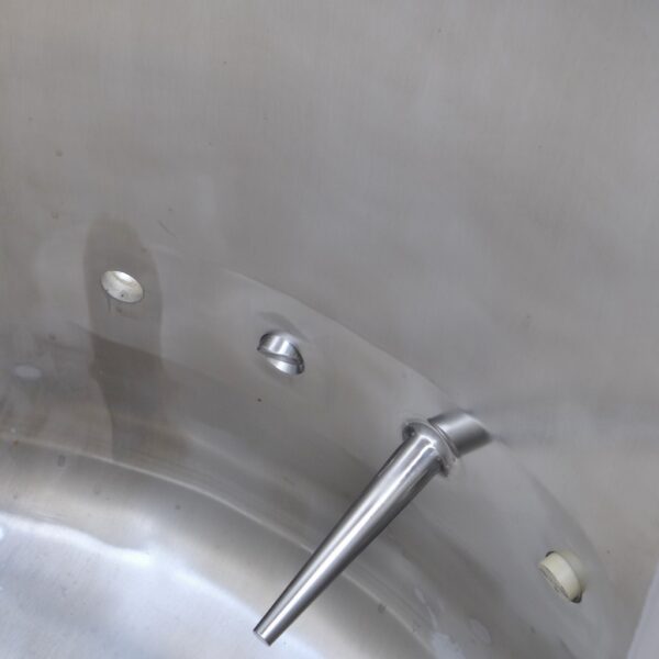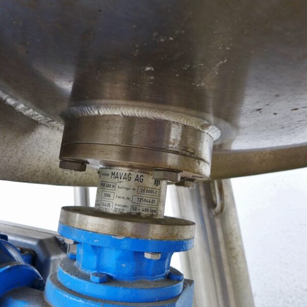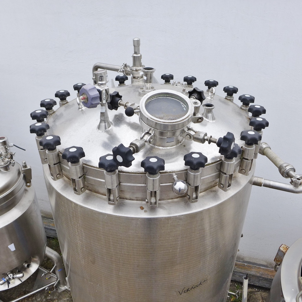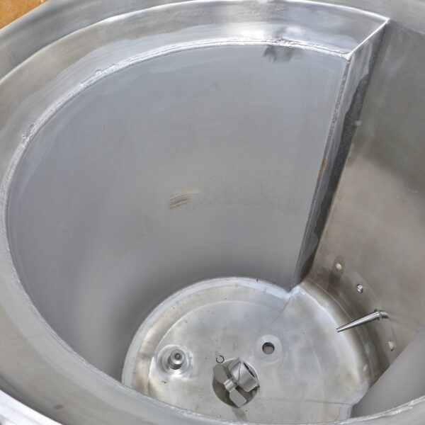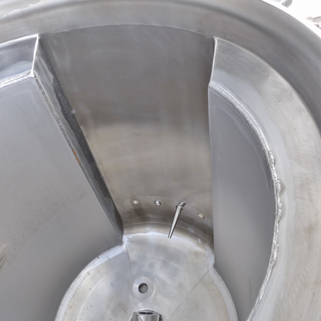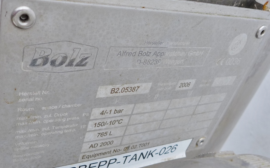 An internal double jacket was subsequently welded into the tank by the previous operator, which reduces the volume specified on the type plate to approx. 500 liters (see photos); Unfortunately, we