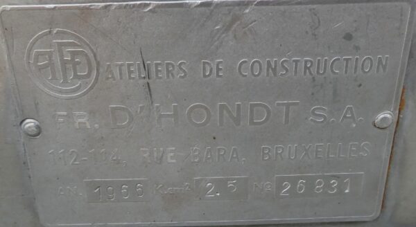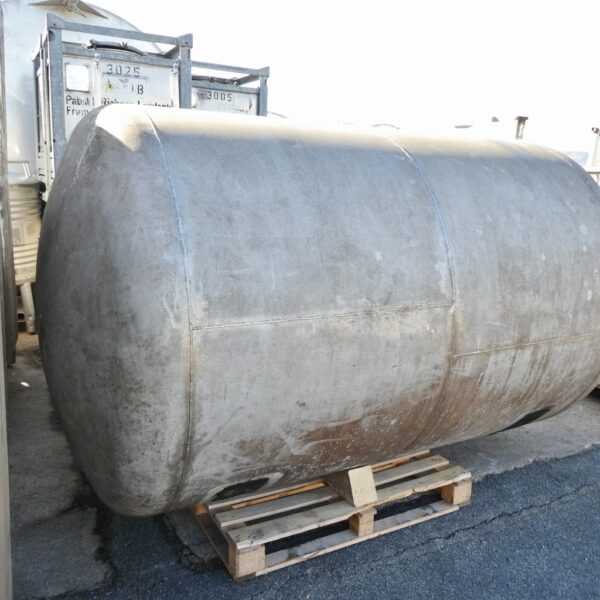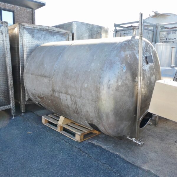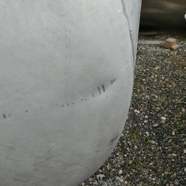 wine storage; 1 manhole appr. 300 x 400 mm in the front bottom; bearing shells/feet made of Fe (galvanized); working pressure see type plate; 1 smaller dent in the back bottom (see photos); if you