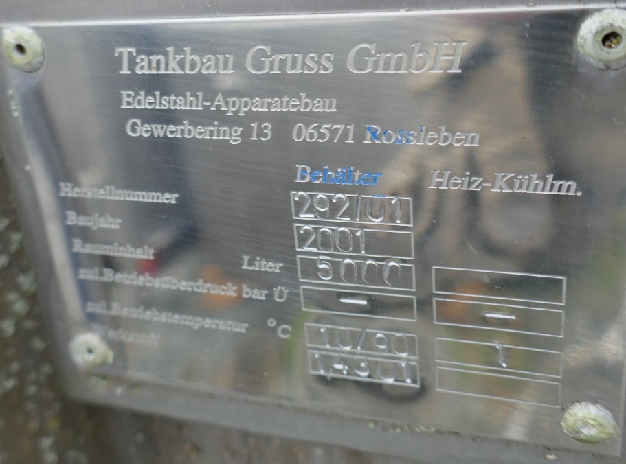 Dairy (cheese production); Double jacket with trickle ring – only suitable for cooling (pressure of 3.5 bar for cooling stated in the drawing – not stated on the name plate); Rectangular opening on