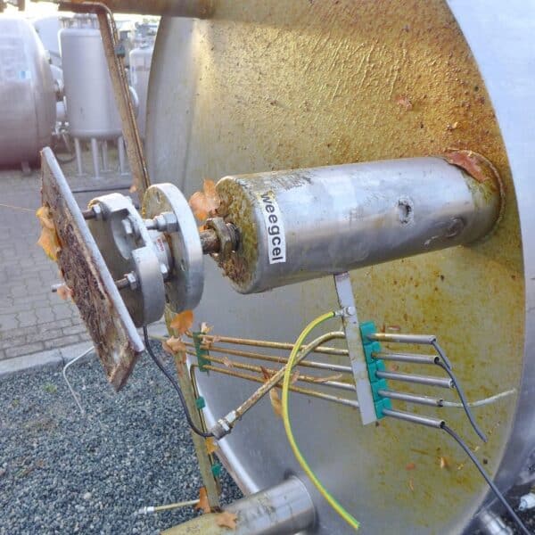 Food industry; Heating coil outside around the lower cylinder area; 3 of the feet are equipped with load cells (no guarantee of functionality); one foot is missing the load cell ; some residues of