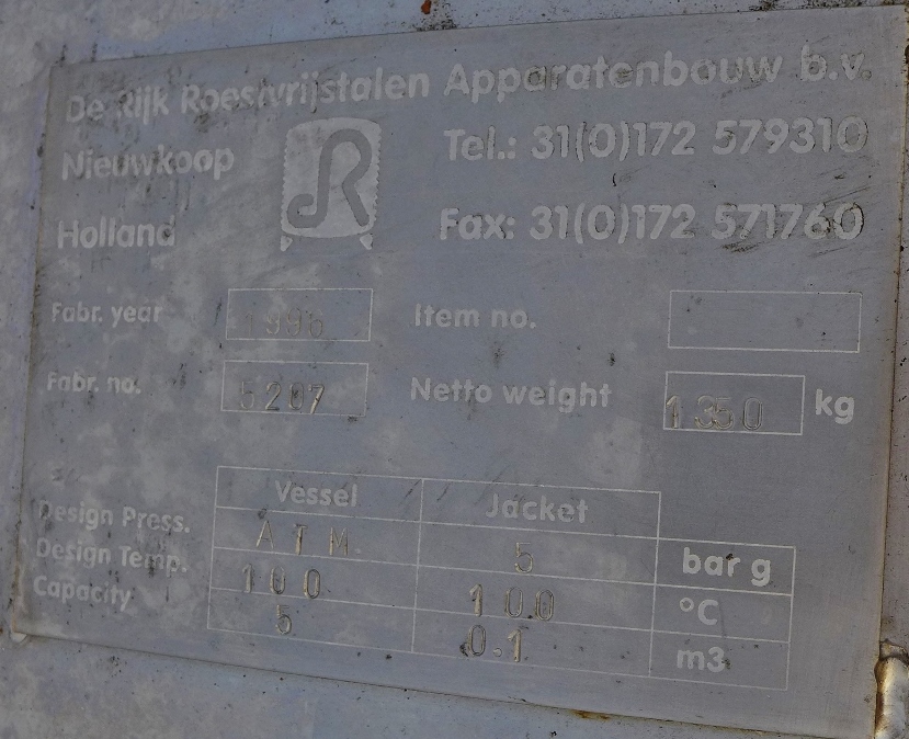 Food industry; Smaller dents in the insulation jacket; some residues of previous content; we can’t give any guarantees about the heating/cooling jacket; we can’t give any guarantees about the