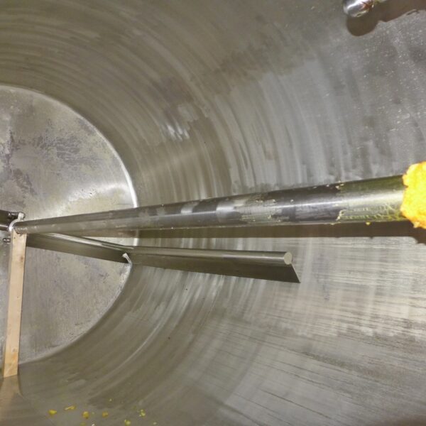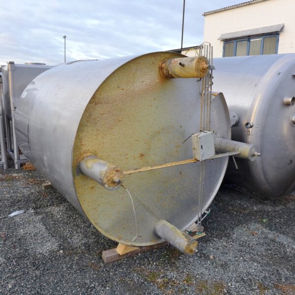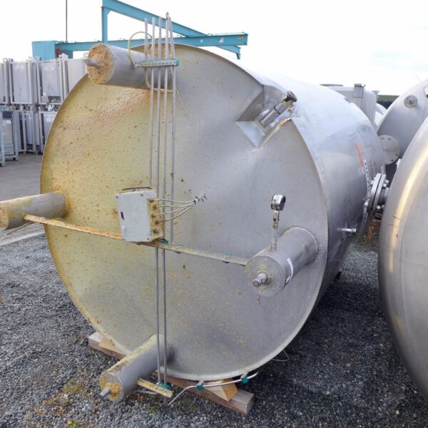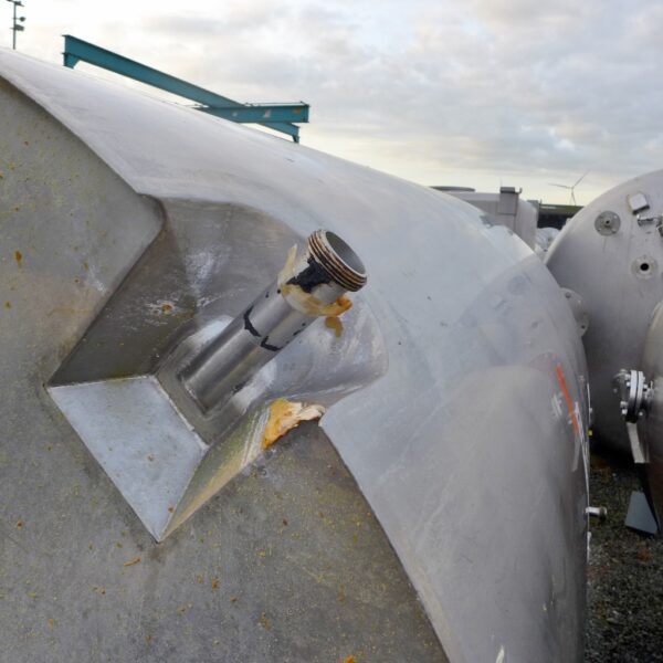 Food industry; Manhole diameter 490 mm; nameplate may no longer exist; half-coil around the lower cylinder area; adhesions inside the tank; bump at the insulation jacket; we can’t give any