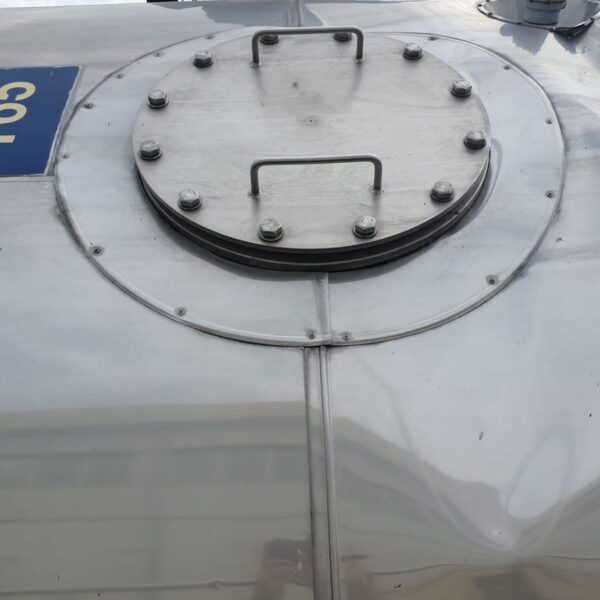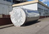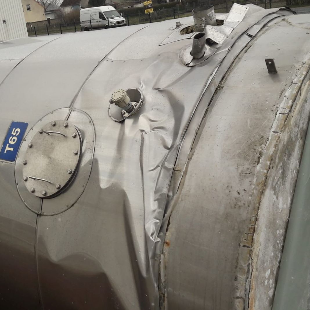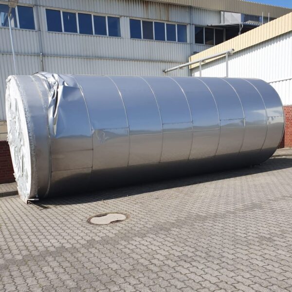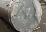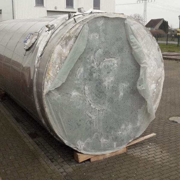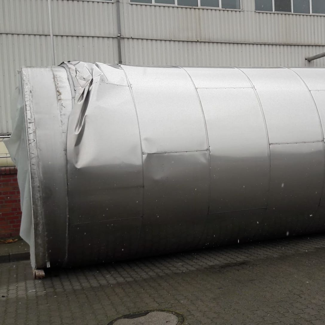 Vapor water tank (dairy); exact dimensions may vary slightly; riveted insulation is damaged in some places (see pictures); The bottom of the tank is filled with concrete; some residues of previous