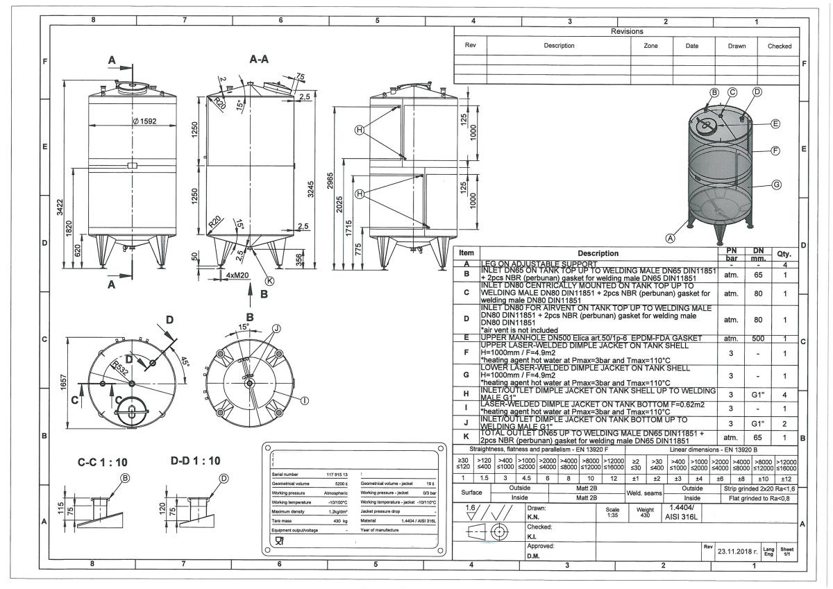 Fläns för omrörare: Nej Märkskylt: Ja Livsmedelsklassad: Ja med besiktning av: TUV Tankutlopp: inside Ø 65 mm Teknisk ritning finns: Ja Utloppstyp: DIN11851