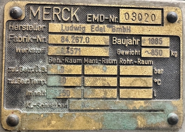 Chemistry; Cone height approx. 950 mm; 4 feet, Fe screwed to 4 support brackets, Fe; manhole was converted by the previous operator for his purposes; 2 rectangular sheets were welded into the cone