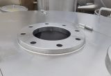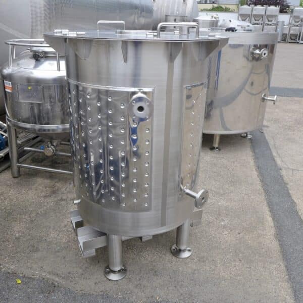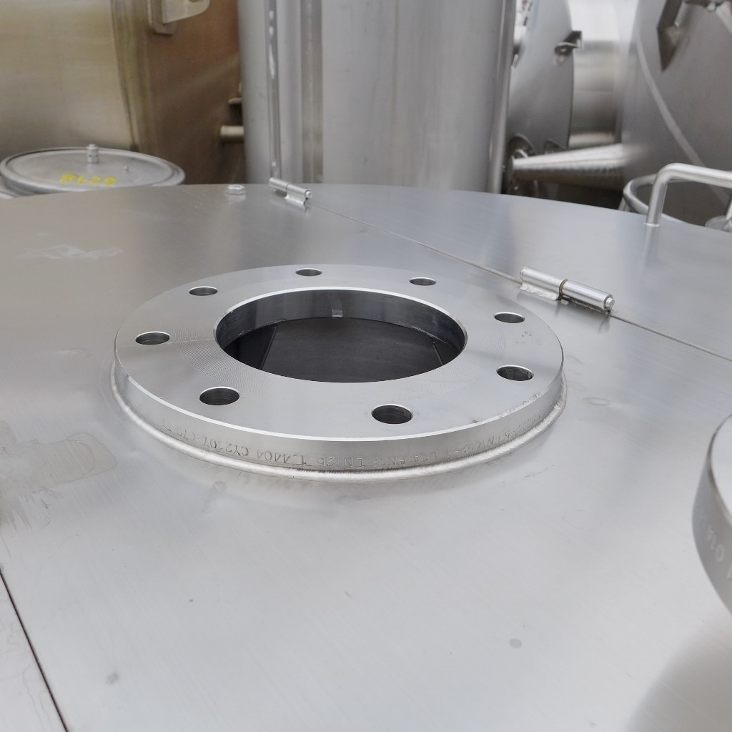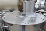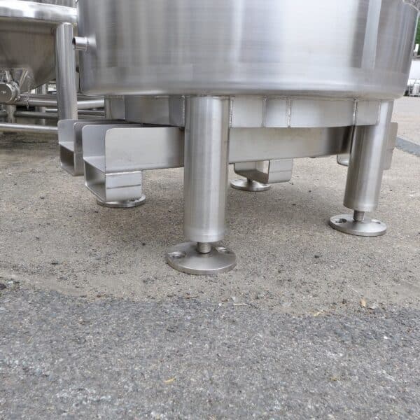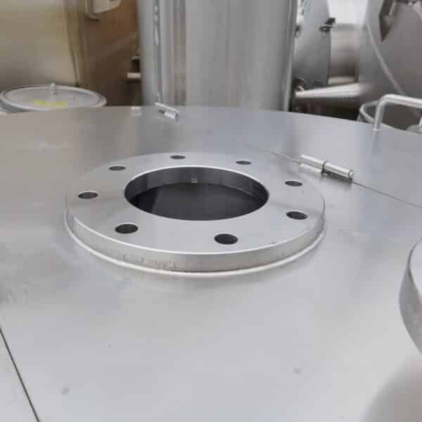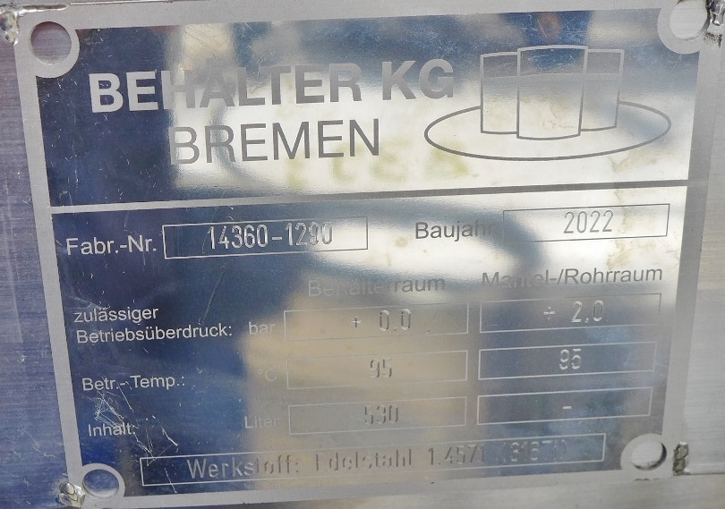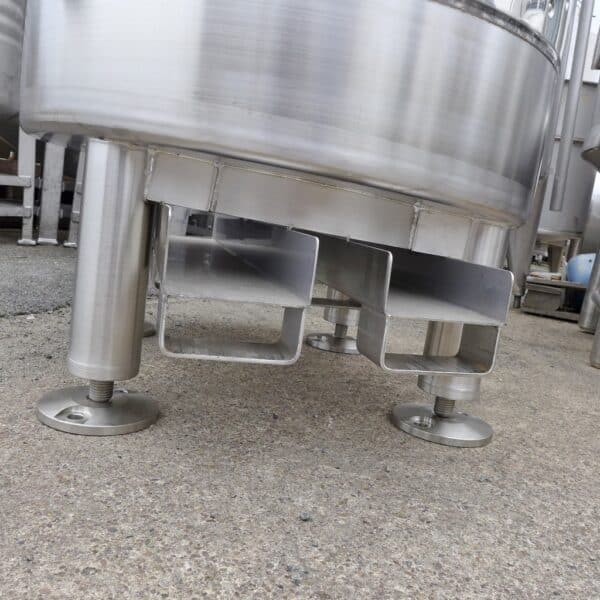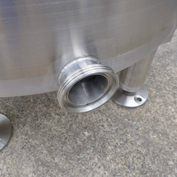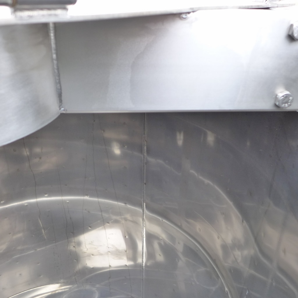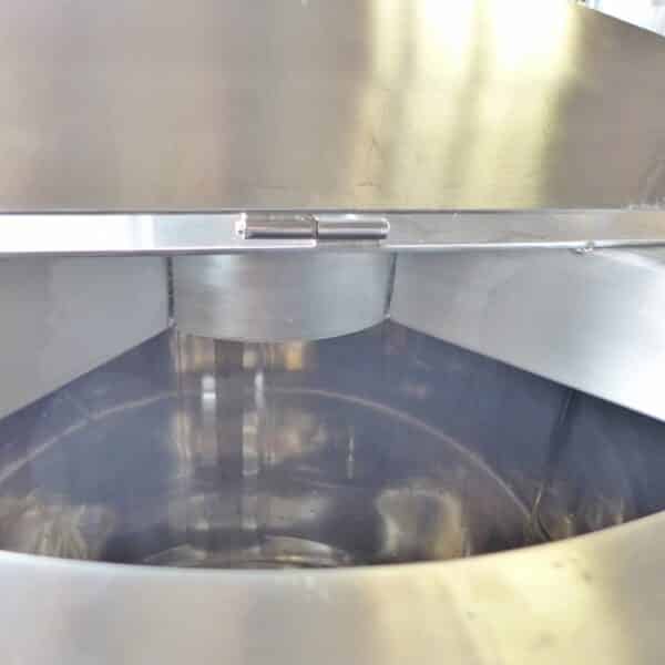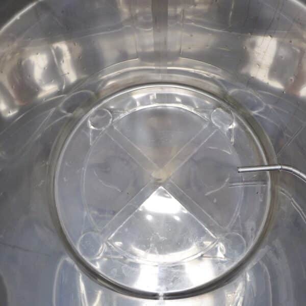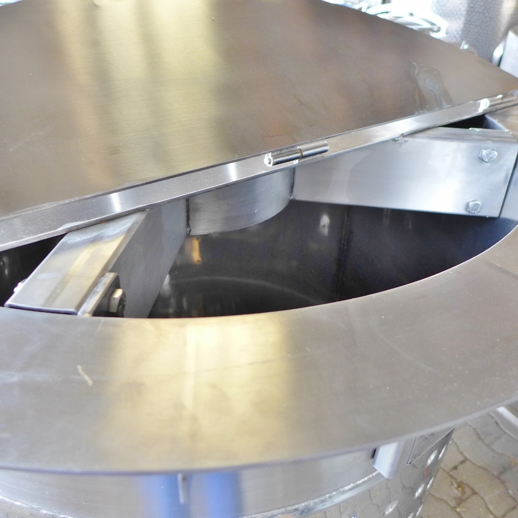 Outlet DN 60 DIN 11851; reinforcement ribs inside under the upper bottom (removable); 2 fork pockets on the outside of the lower bottom