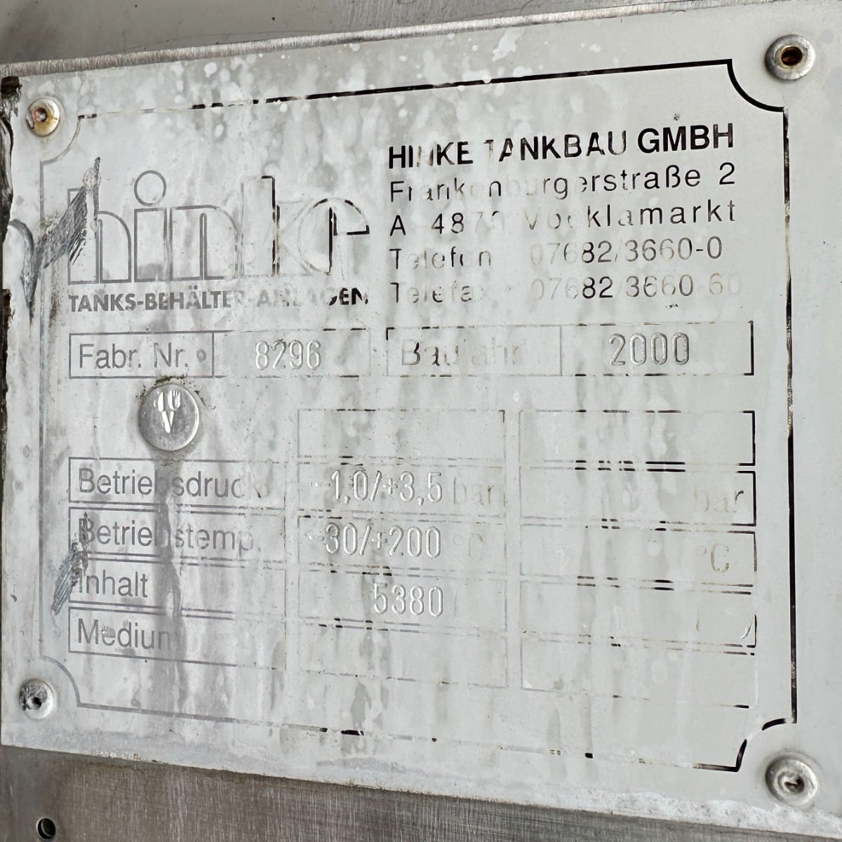 5380 liter tank i Syrafast 316