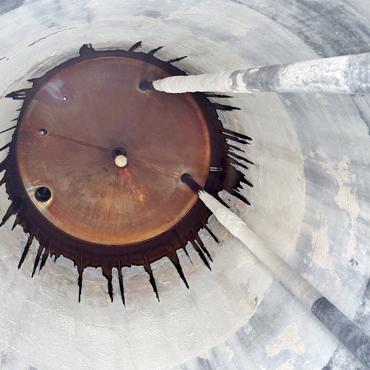 lye; manhole diameter: approx. 500mm; 2 pipes inside the tank; some residues of previous content