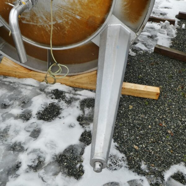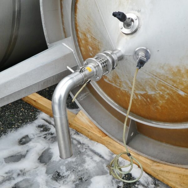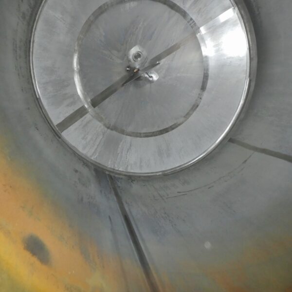 Dairy; Manhole diameter 450 mm (suspension of the manhole cover incomplete); some residues of previous content;pipe end cut flush;Metallic discolouration inside