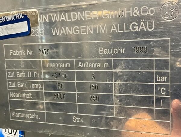 Cosmetics; Flanged to the outlet 1 reduction to diameter 65 mm; 1 dip tube inside the tank; 1 pallet with accessories (foot platforms, fittings, etc.) is included in the scope of delivery; these