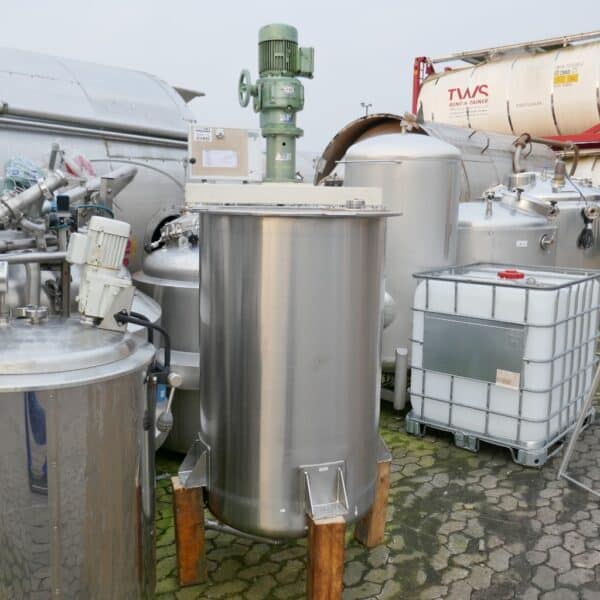 Pharmacy; 4 support brackets, Aisi 304 (currently temporarily screwed onto 4 wooden beams); 1 circular opening in the tank lid (see photos); we can’t give any guarantees about the agitator