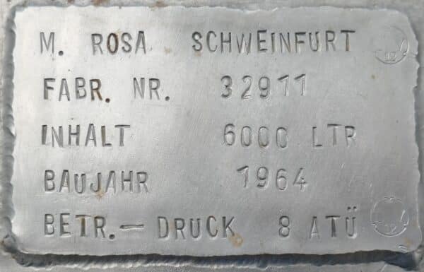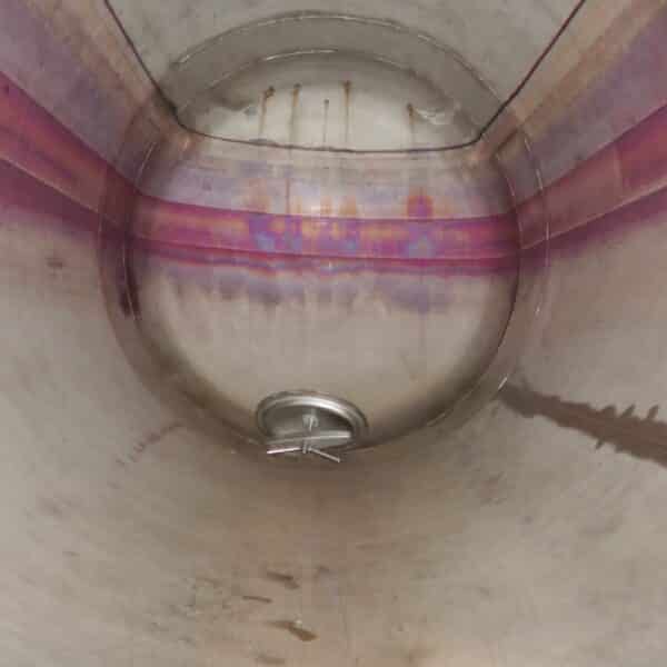 Sparkling wine; 1 manhole approx. 320 x 420 mm in the front bottom, slight metallic discoloration inside; some residues of previous content