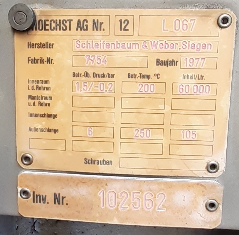 Rapeseed oil; Manhole cylinder NW 600; smaller sheet metal cutouts in the insulation jacket; bump at the insulation jacket;manhole cover plated; we can’t give any guarantees about the