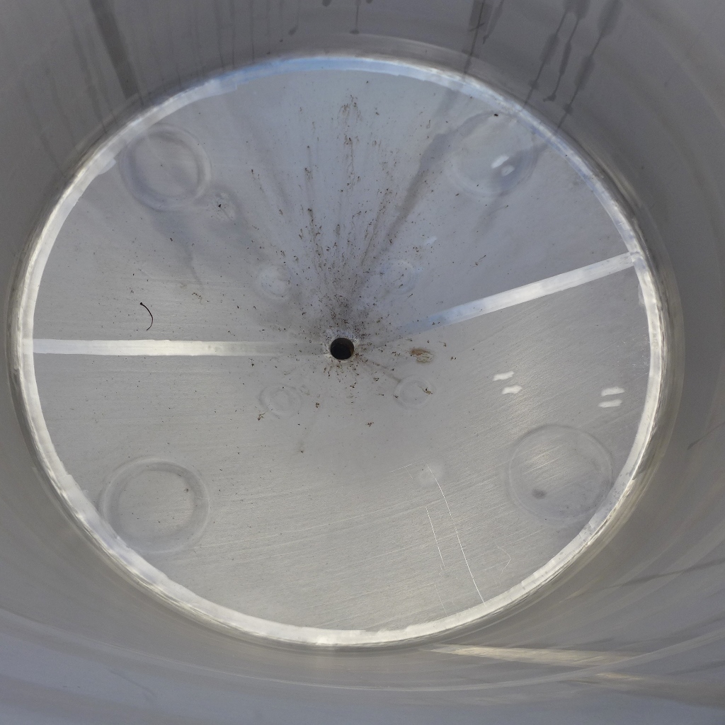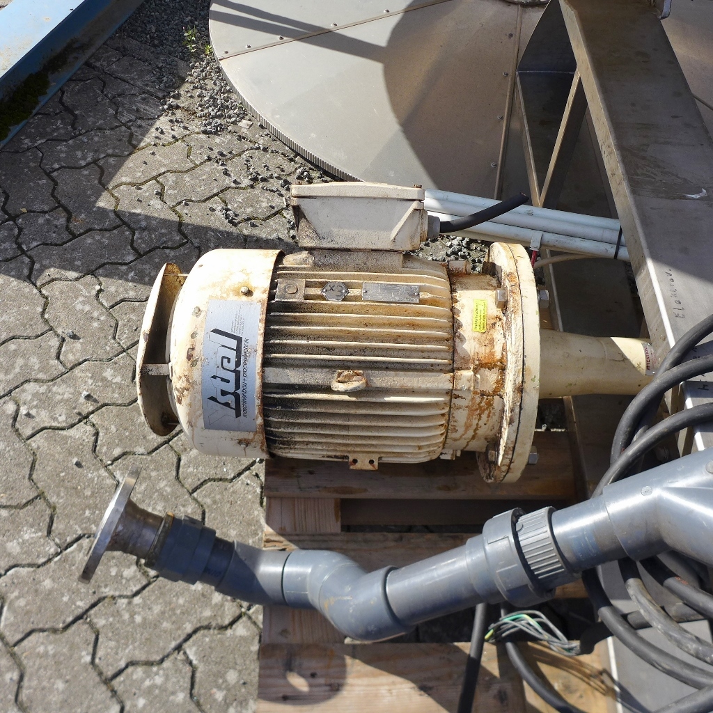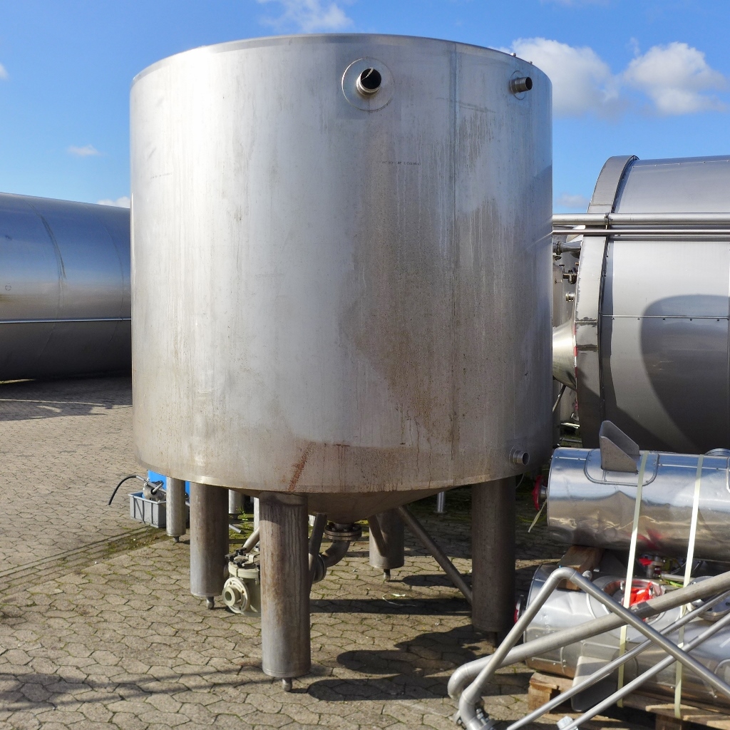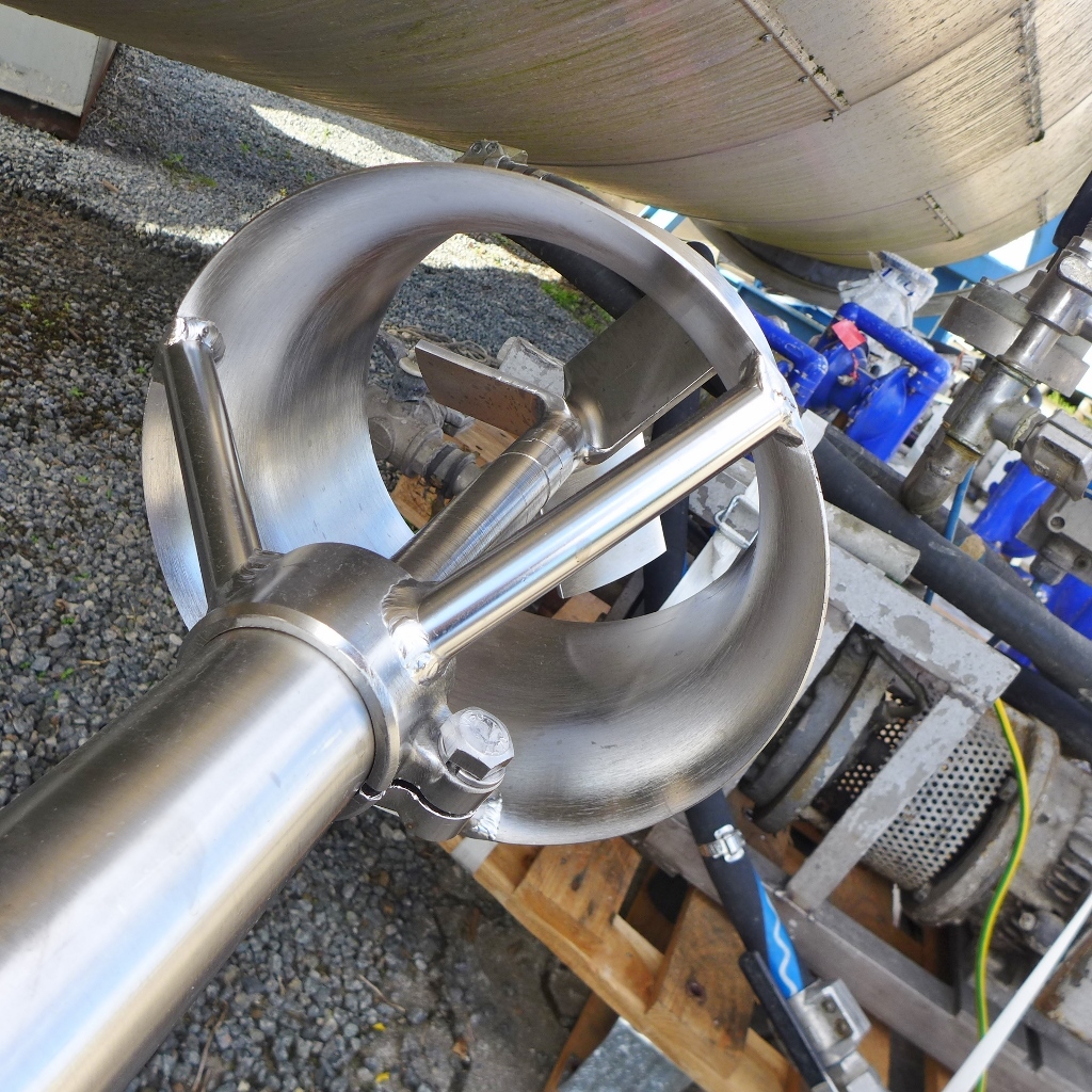 Additional information: Chemistry; Insulation only around the cylindrical part of the tank; flanged to the outlet is a reducing fitting (reduced to an inside pipe diameter of 50 mm; fitting components made of plastic); 1 pump is included (see photos) Volumetric volume (L): 6.100 L Pressure in tank: ATM - atmosferic Max. temperature (°C): 80 °C Material wet parts: SS AISI 316 (V4A) Model: vertical Configuration: insulated with heat-exchanger Heat exchanger: yes Insulation: yes Mobile tank: no Total discharge: yes Volume: 330 L Max. working temperature: 80 °C Type HE on the cylinder: heating/cooling jacket Documents included: no Technical drawing included: no Registration plate on the tank: yes Flange for agitator: no Outlet of tank: flange DN80 Agitator: yes Number of revolutions: 725 / 1450 Power: 3.6 / 5.3 Cylinder: 6,20 mm Bottom: 4 mm Internal diameter tank: 1.990 mm Outer diameter tank: 2.170 mm Cylinder height: 1.800 mm Total height of tank: 3.650 mm