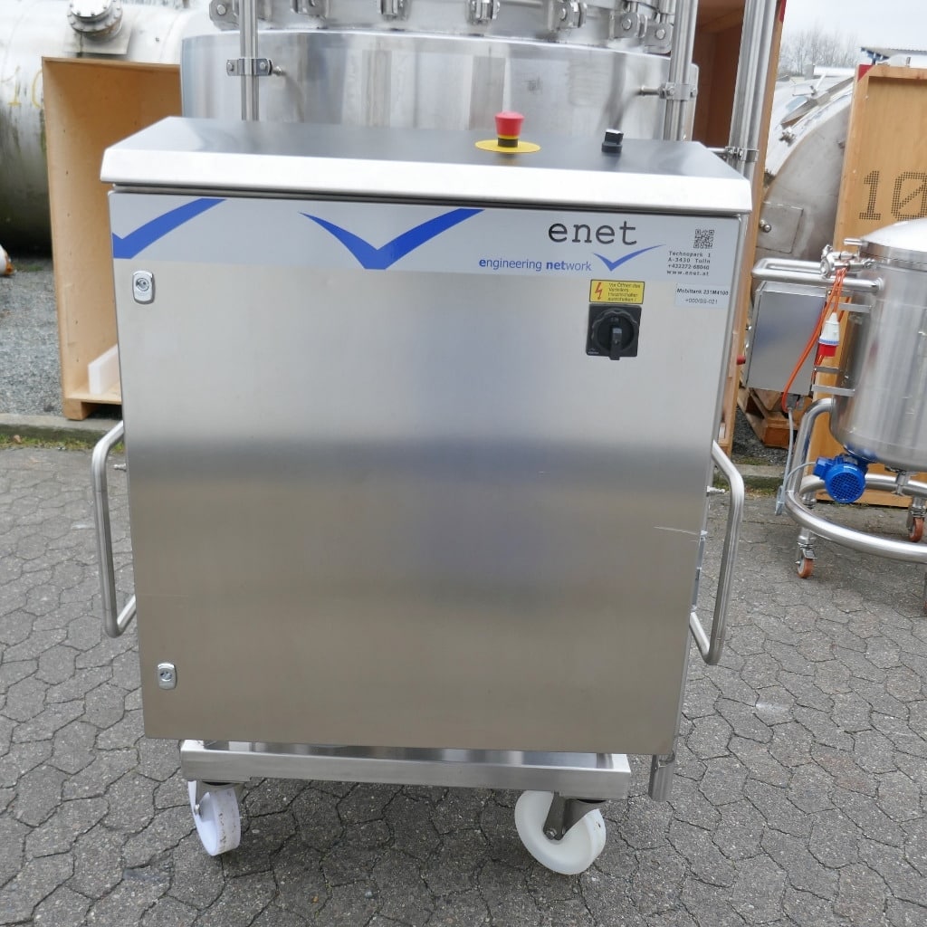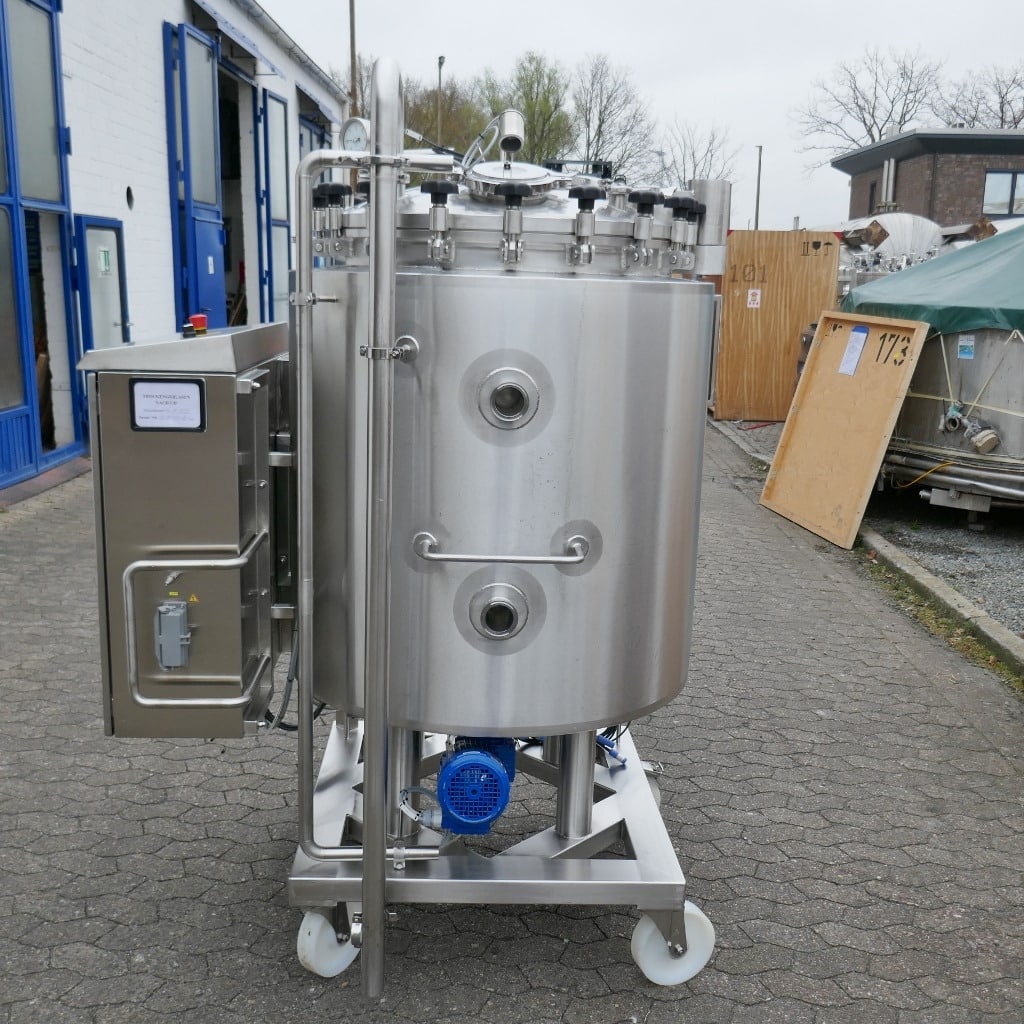 Pharmacy; Mobile frame, stainless steel with 4 plastic castors; we can’t give any guarantees about the heating/cooling jacket; we can’t give any guarantees about the agitator