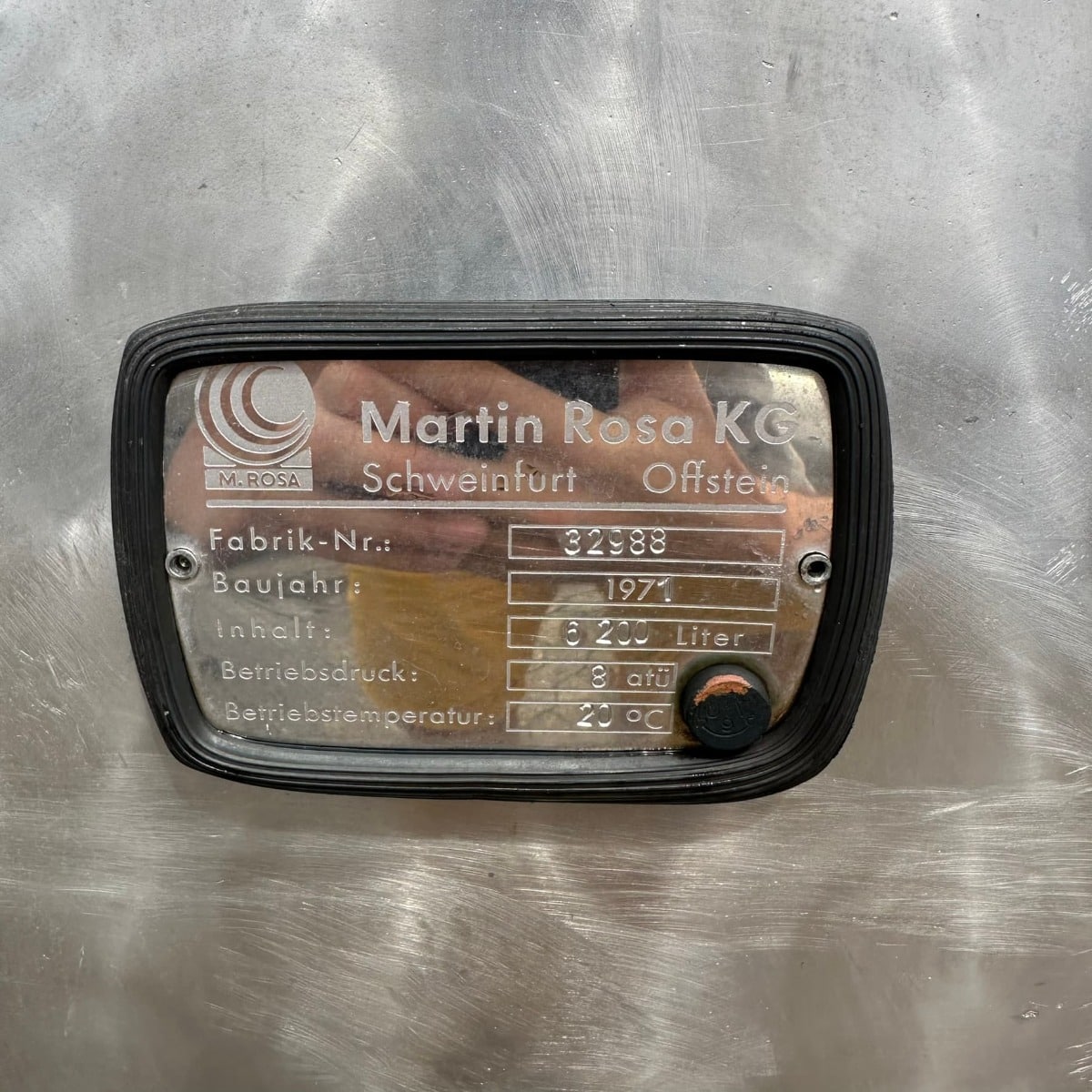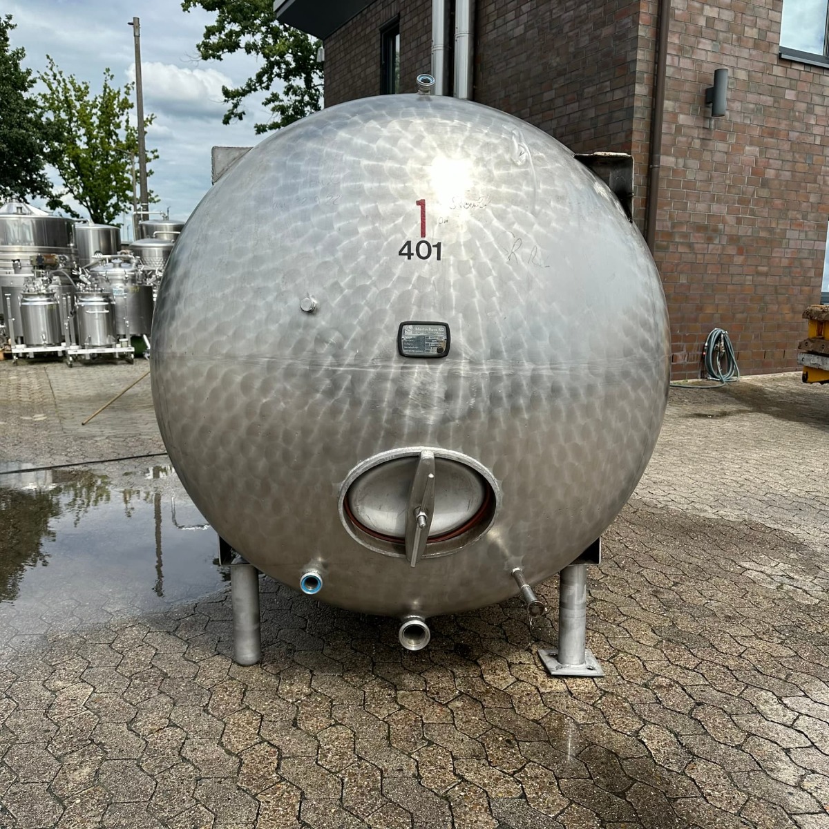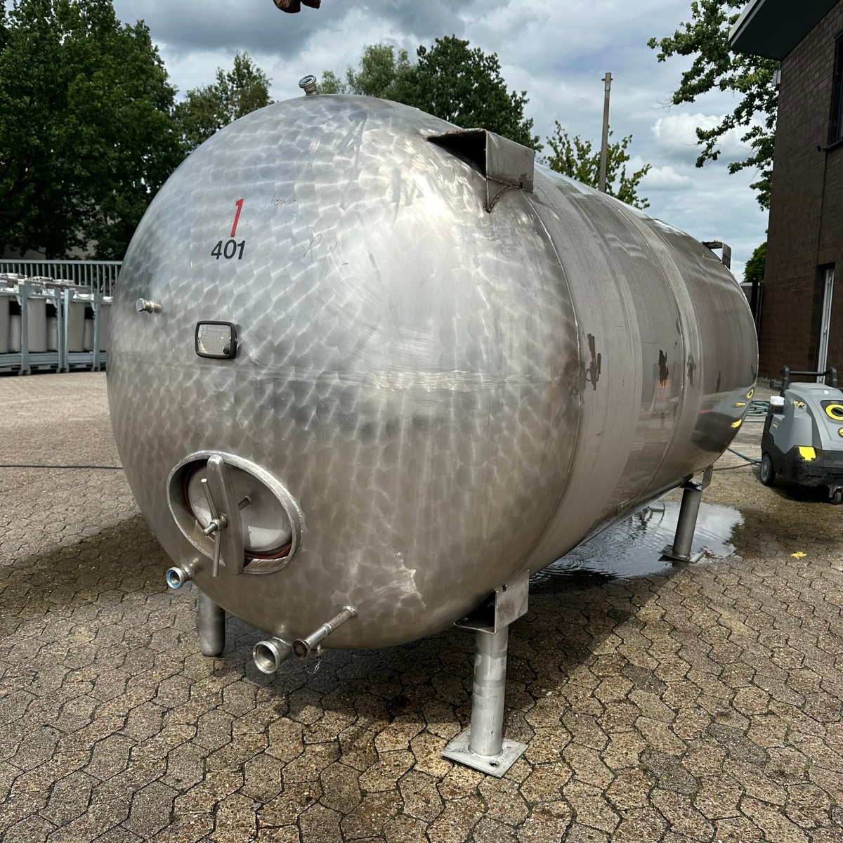 sparkling wine; 1 manhole approx. 320 x 420 mm in the front bottom (the manhole cover of 1 tank is missing); the type plate of 1 tank is missing; front bottom marbled on the outside; foot ends