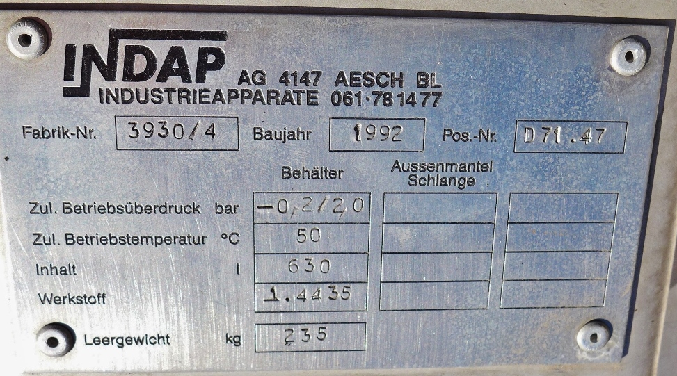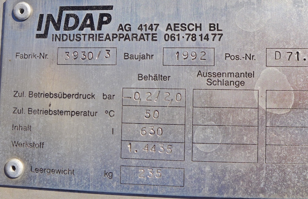 Pharmaceutical Chemistry; Suspended design, bolted to 4 lateral, welded stainless steel plates in the system; Size of the connections in the upper bottom different (see photos)