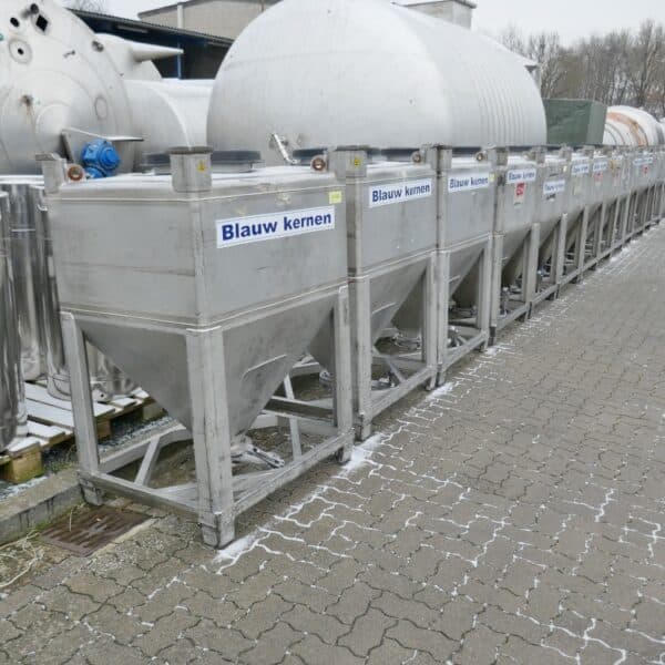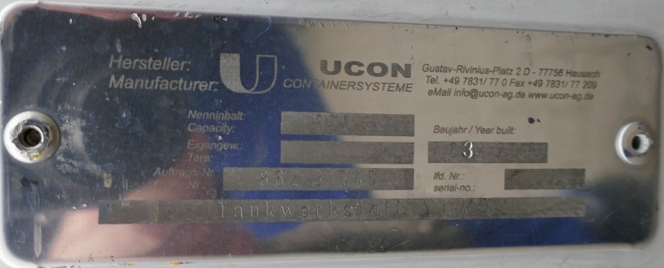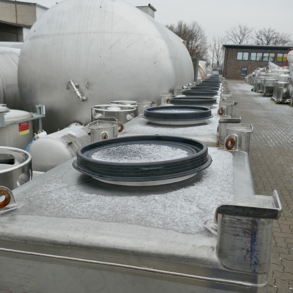 Ink production; Frame, Aisi 304; manhole cover with loose plastic lid (3 containers are missing lids); some slight differences in the design of the containers; some are missing type plates; some