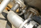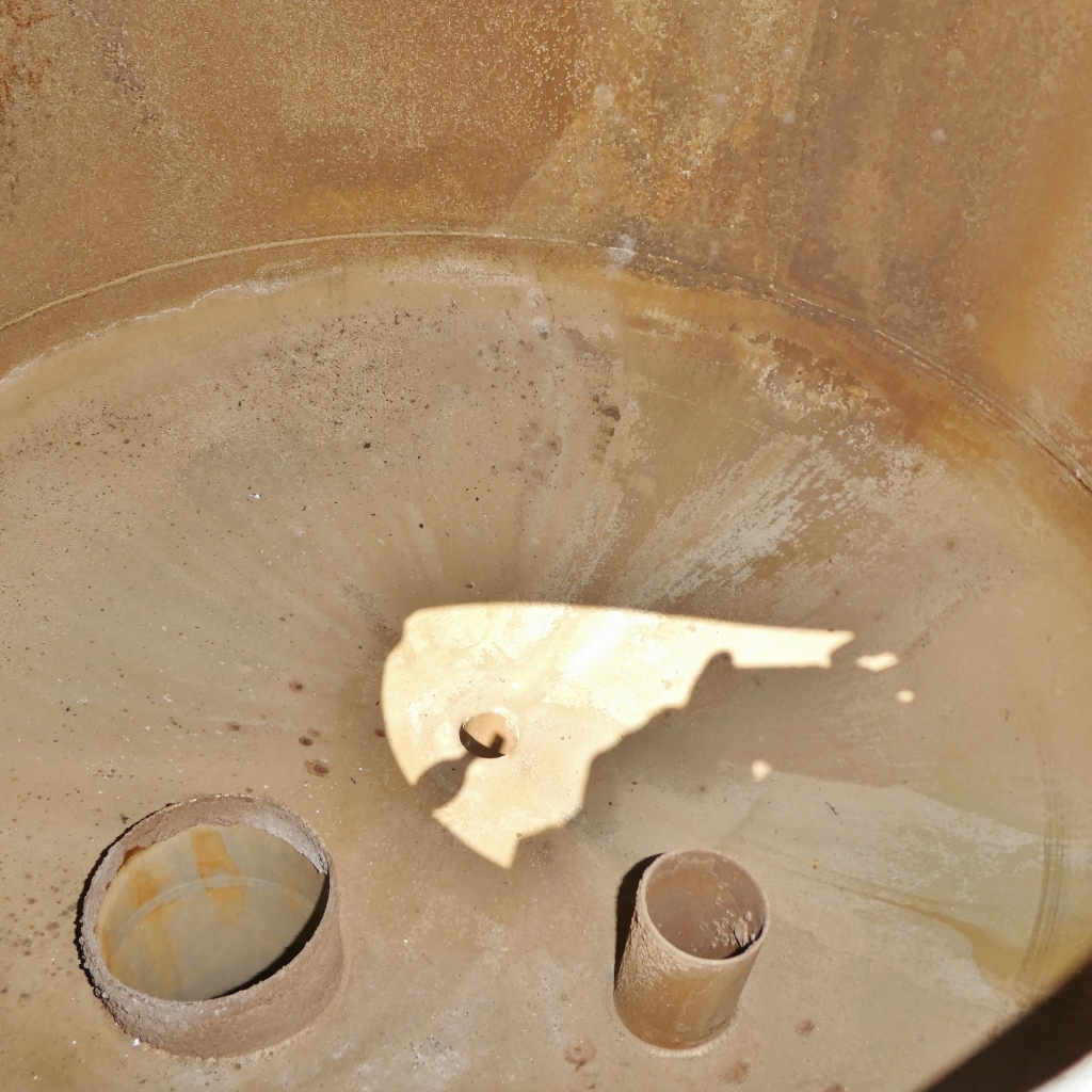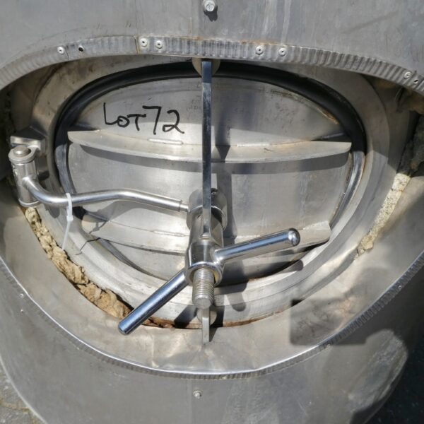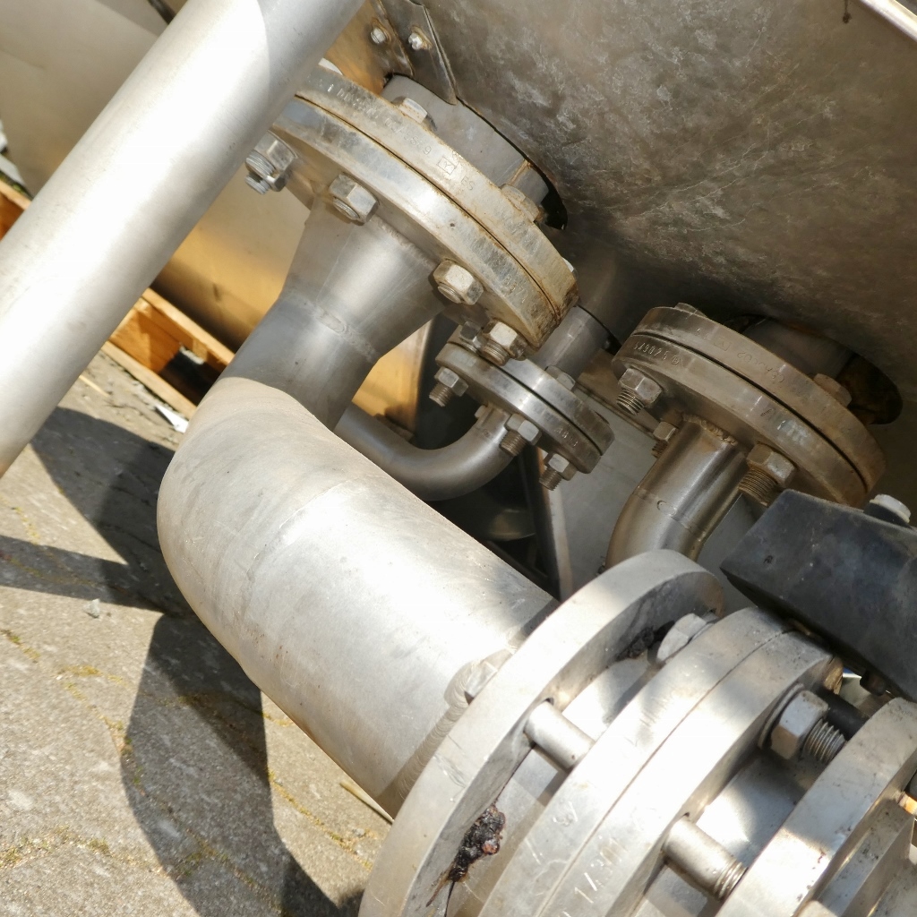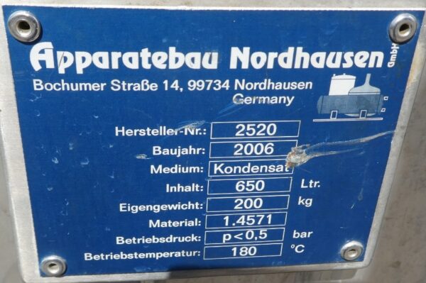 condensate tank in a brewery; manhole appr. 340 x 420 mm; some residues of previous content;dents at the insulation jacket;pipe end cut flush