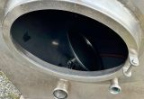 fruit juice; 2 loose saddles, V2A; 1 manhole 340 x 440 mm in the front bottom; some residues of previous content;lime residues