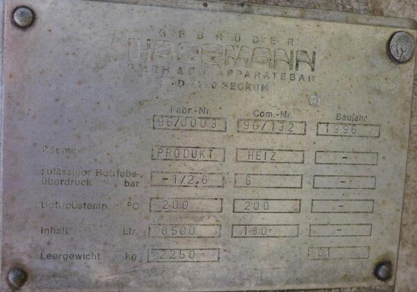 Chemistry; bump at the insulation jacket;manhole cover plated; we can’t give any guarantees about the heating/cooling jacket; we can’t give any guarantees about the agitator