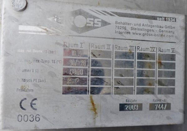Chemistry; Manufactured according to DIN 6618; manhole diameter 600 mm; 1 pipe inside the tanks