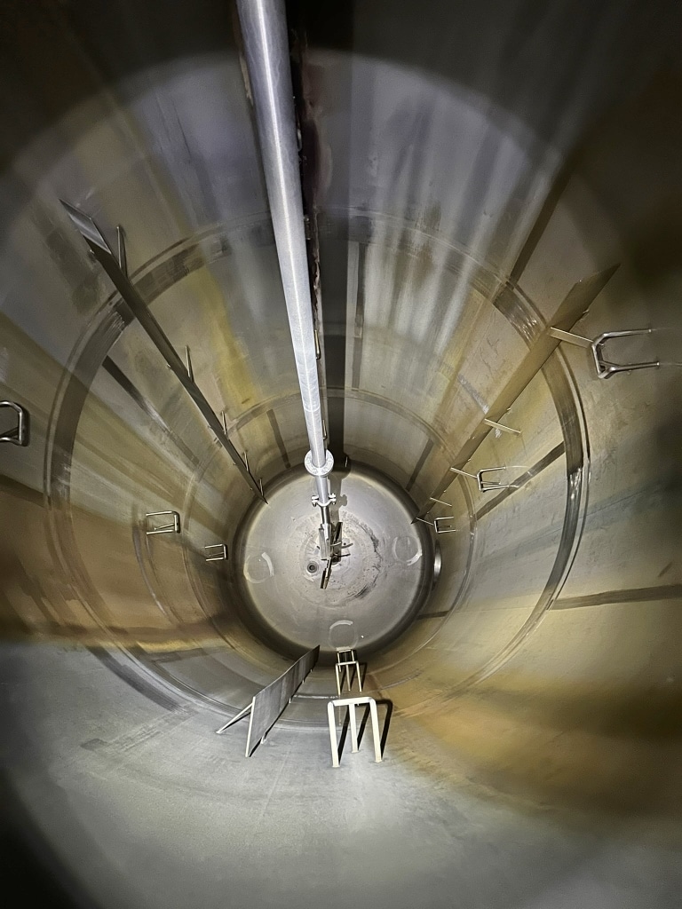 Solvents; Manhole cylinder DN 600; Total height without taking the agitator into account; Metallic discolouration inside; we can’t give any guarantees about the agitator