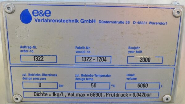 Fragrance production (alcoholic scents) ; 2 loose bearing shells, Aisi 304; 1 manhole approx. 345 x 440 mm in the front bottom