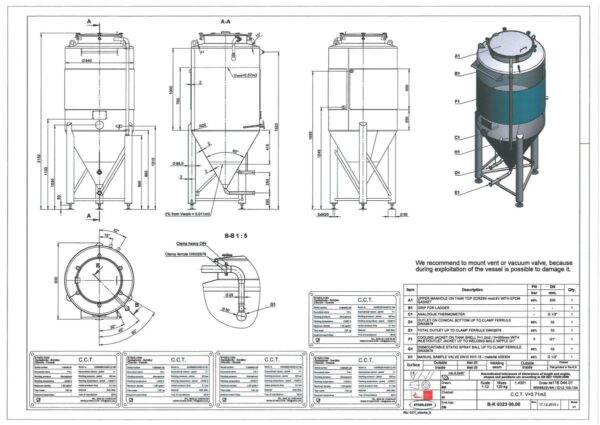 Included in the price: cip spraybol, thermometer, sample valve. In option: butterfly valve, airlock (see options); Ra=<0.8µm