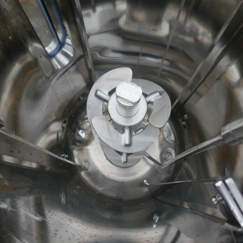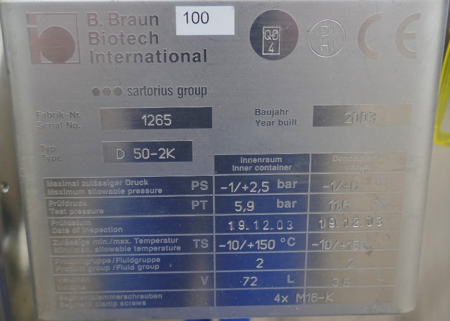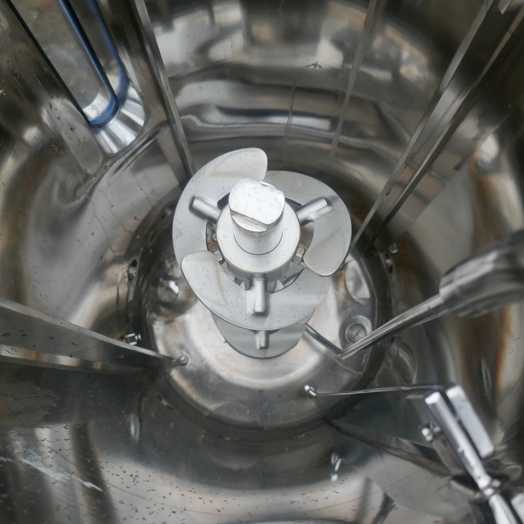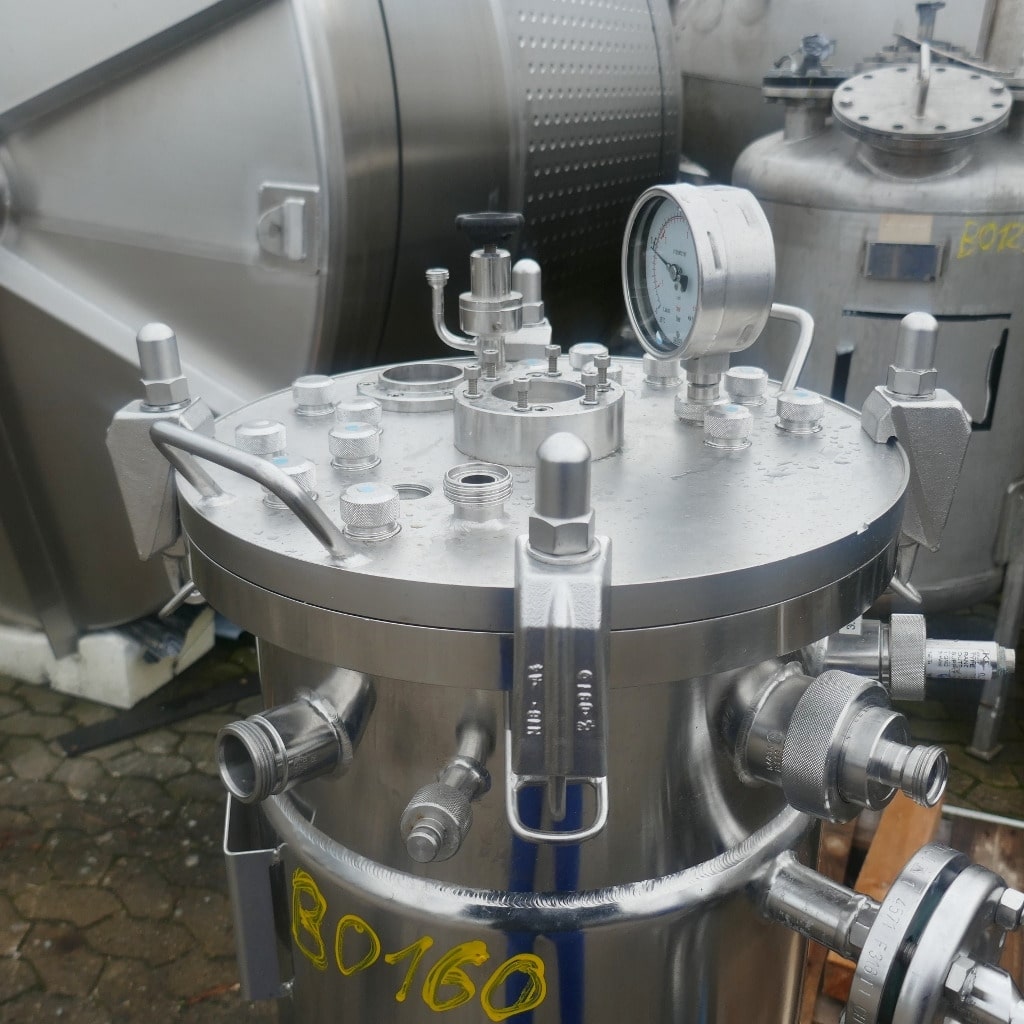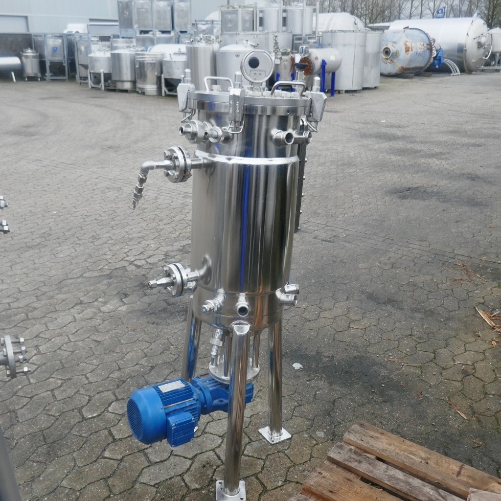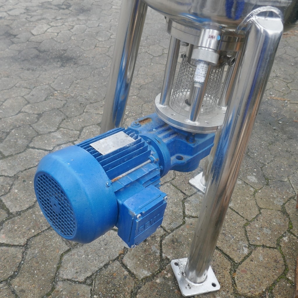 Pharmacy; Tank lid made of 1.4404 (stainless steel 316); 1 longitudinal sight glass in the cylinder; slight metallic discoloration on the inside; we can’t give any guarantees about the agitator