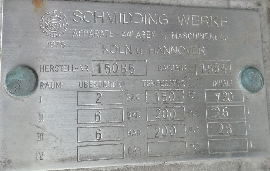 chemistry; 3 support brackets Fe; screws of the upper bottom flange are mostly missing; motor-/gear is missing; we can’t give any guarantees about the agitator