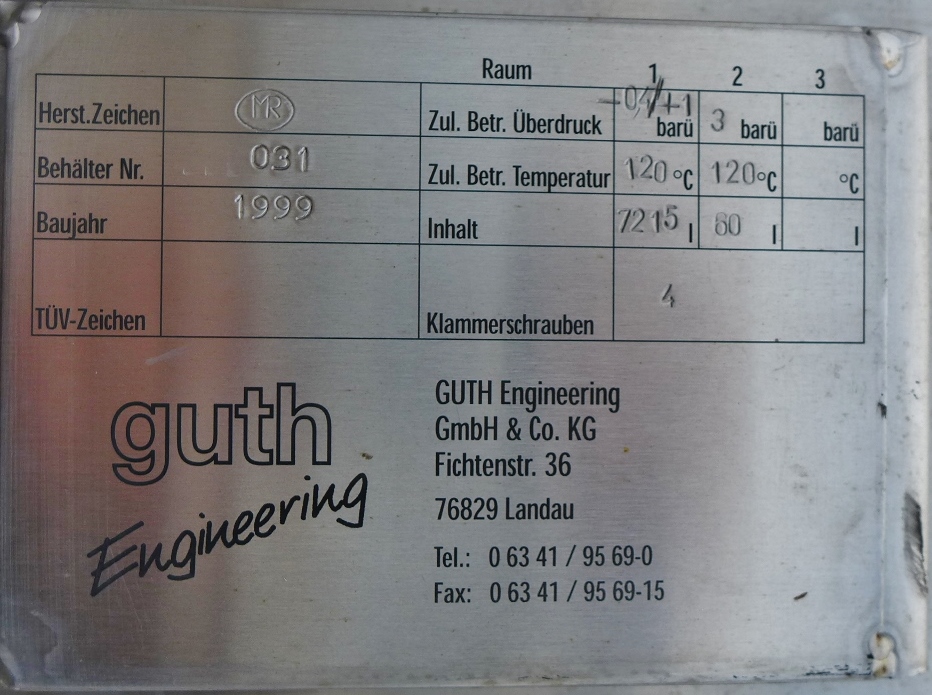 Food industry; Manhole diameter 460 mm; slight metallic discoloration inside ; some residues of previous content;bump at the insulation jacket; we can’t give any guarantees about the