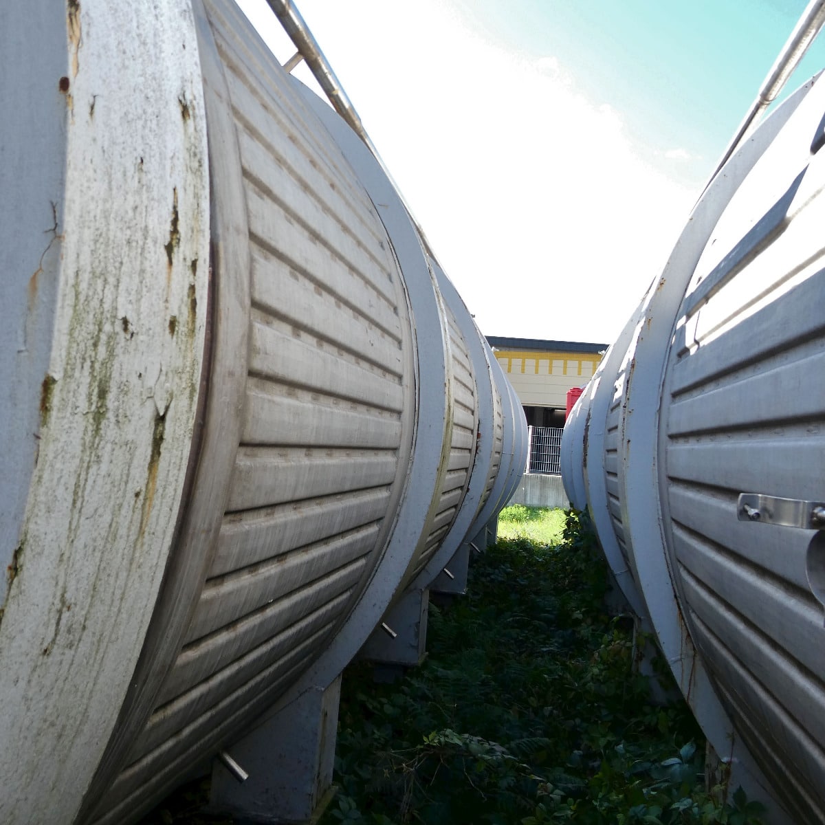 Brewery; 6 reinforcement rings Fe with 2 feet each (Attention: tank diameter lower than tank feet; note when setting up); manhole in the front floor