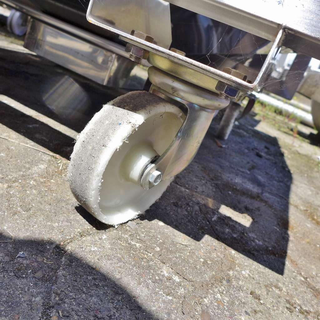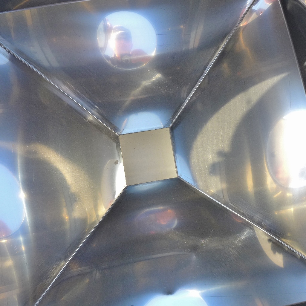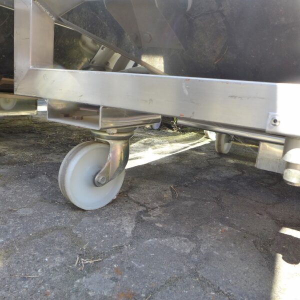 Pharmacy; Basic dimensions inside approx. 950 x 950 mm; Frame, Aisi 304 with 4 plastic wheels; loose cover with central manhole diameter approx. 395 mm (manhole cover is also loose); Outlet approx.
