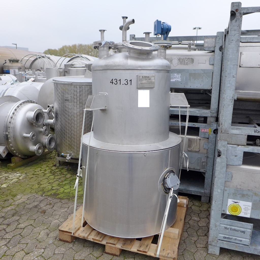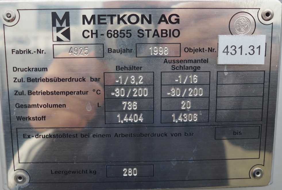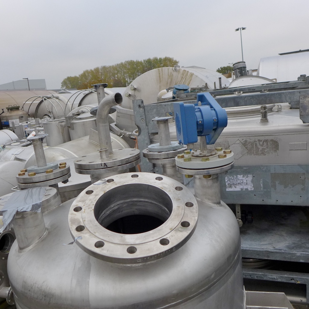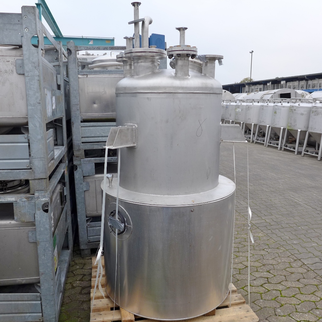 Additional information: Pharmaceutical Chemistry; 3 support brackets, st. st.; Half-coil, Aisi 304 around the lower cylinder area and the lower bottom; hand hole DN 200 (hand hole cover is missing); Insulating jacket made of material 1.0425; some residues of previous content