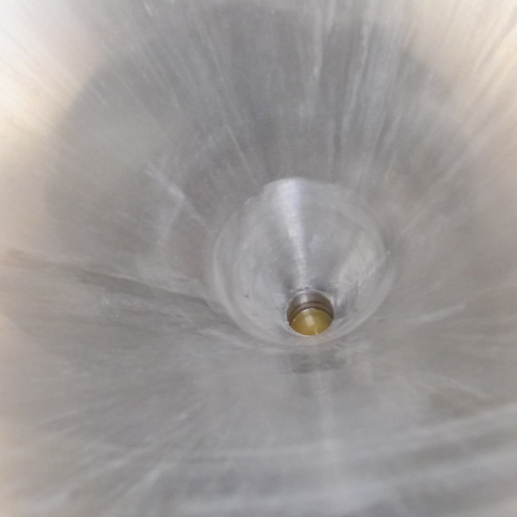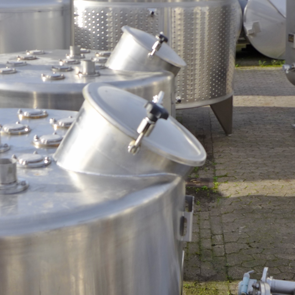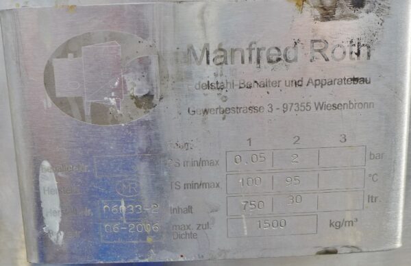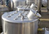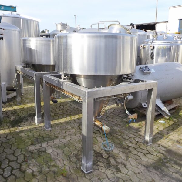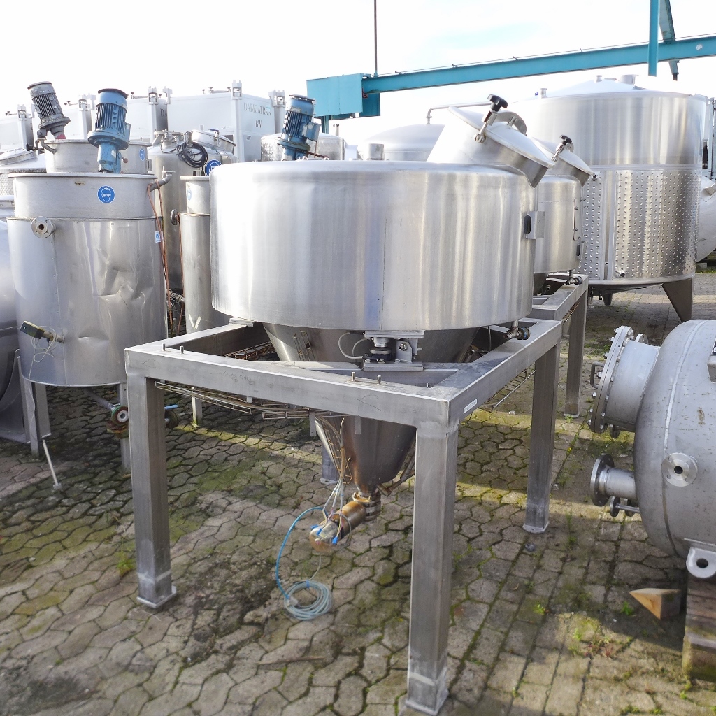 Food industry; Inner tank in "funnel shape"; manhole diameter approx. 410 mm; tank screwed onto 3 load cells each in a 4-legged frame; we can’t give any guarantees about the heating/cooling jacket