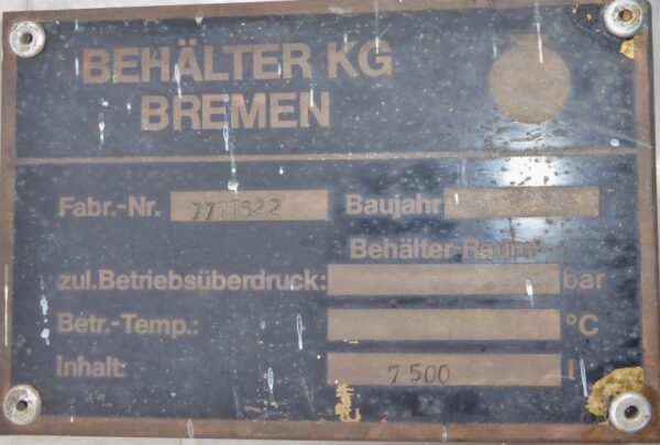 7500 liter tank i Rostfritt 304
