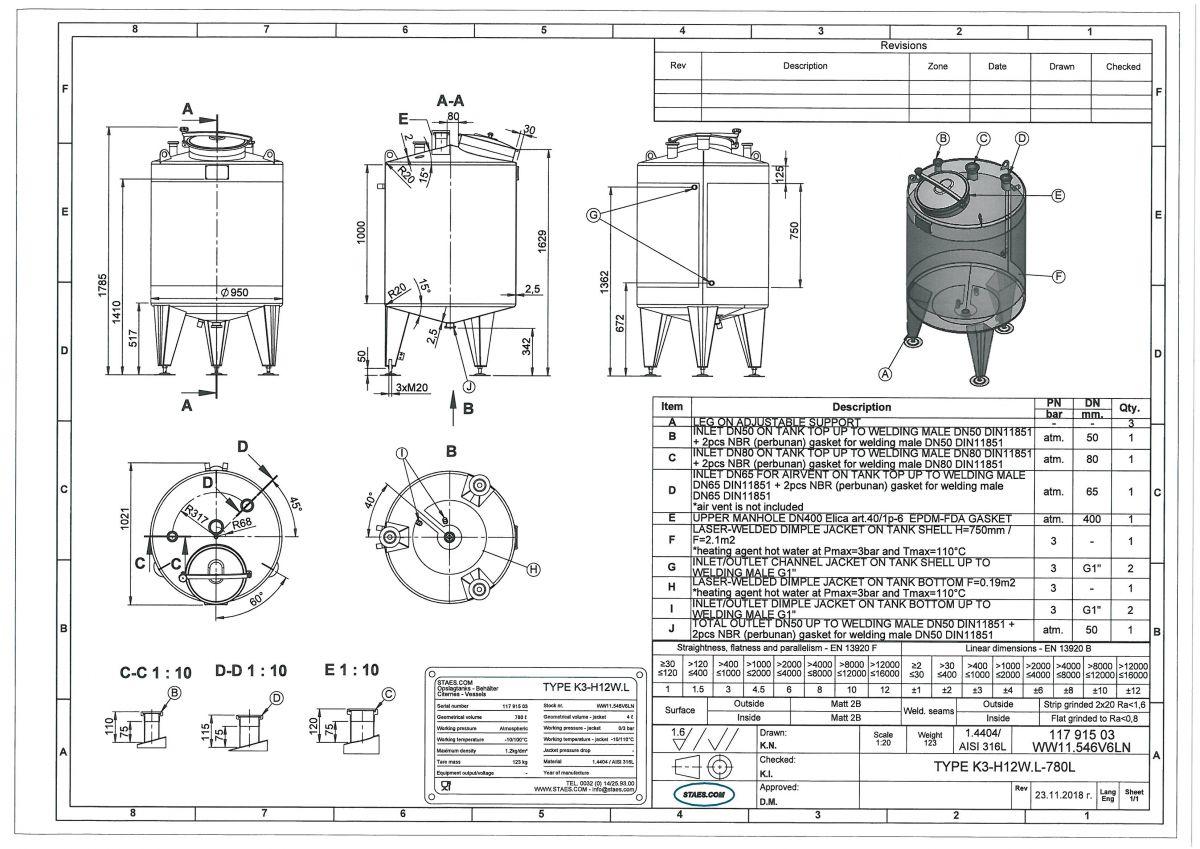 780 liter tank i Syrafast 316