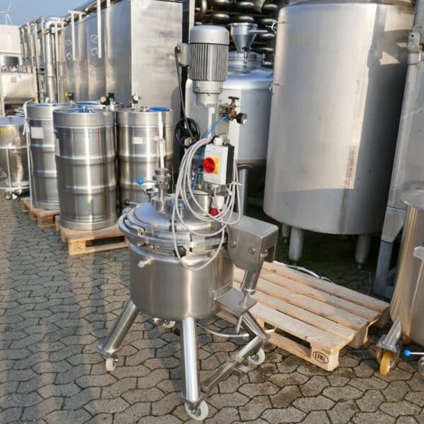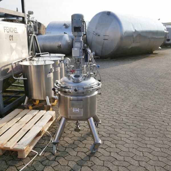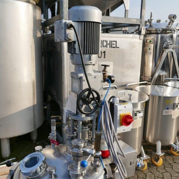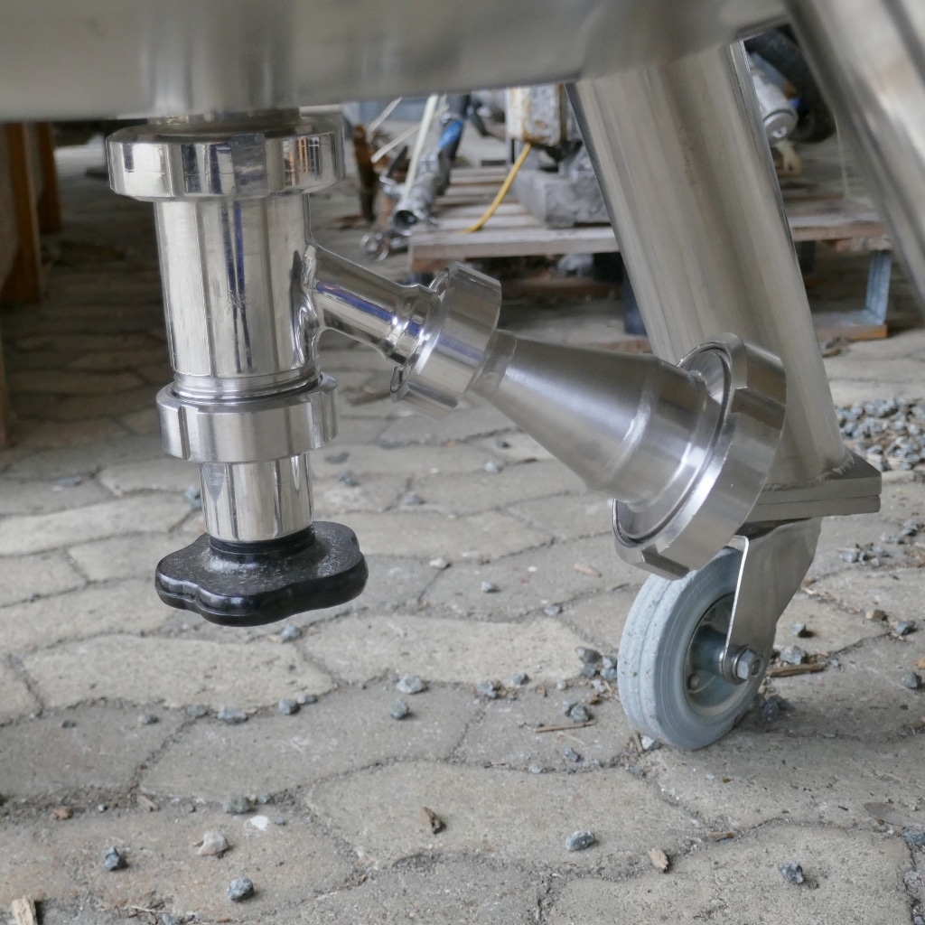 Pharmacy; 1 screwed fitting enlarges the actual outlet from DN 20 to DN 50 DIN 11851 (see photos); we can’t give any guarantees about the agitator
