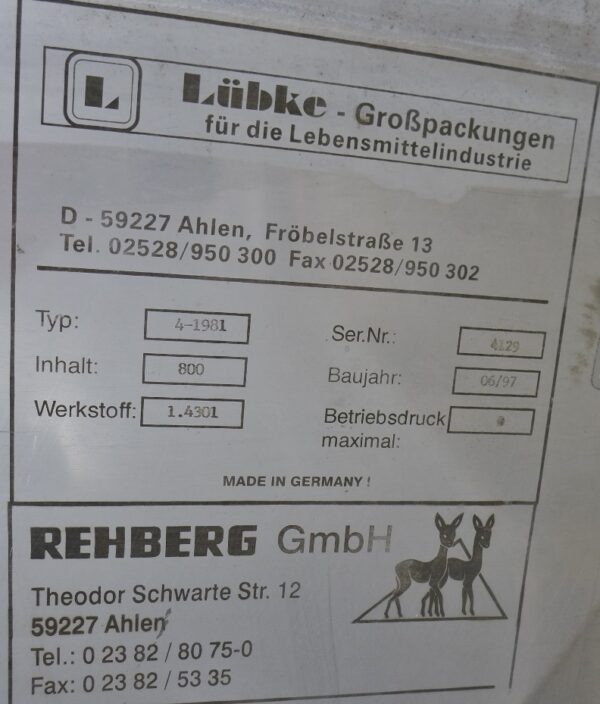 Yeast storage; Frame, Aisi 304 (partially bent struts); Type plates not available on all containers; 1 welded bracket each in the manhole collar inside (see photos); Suspensions of the manhole cover