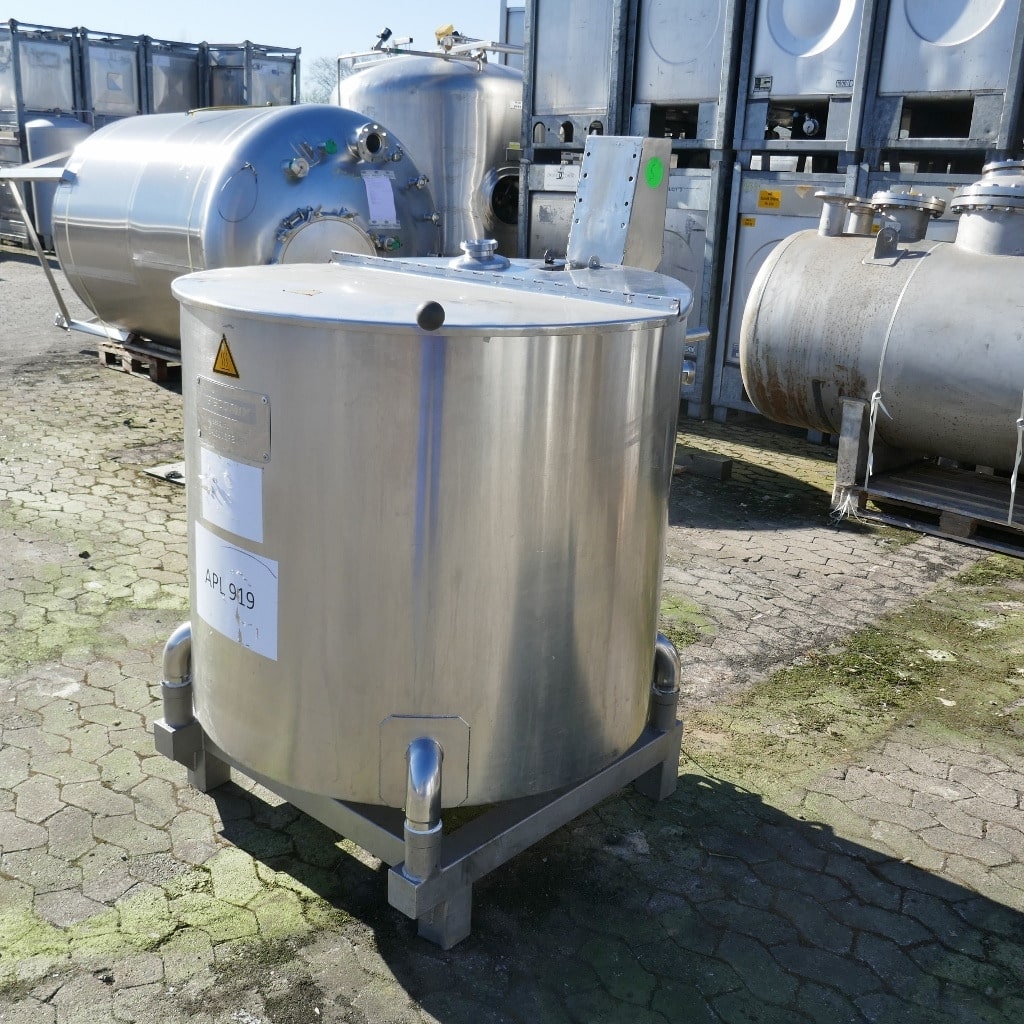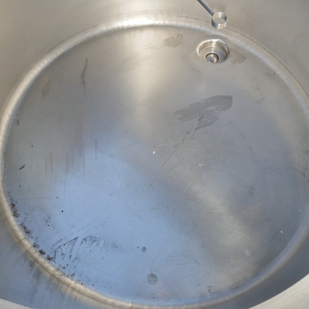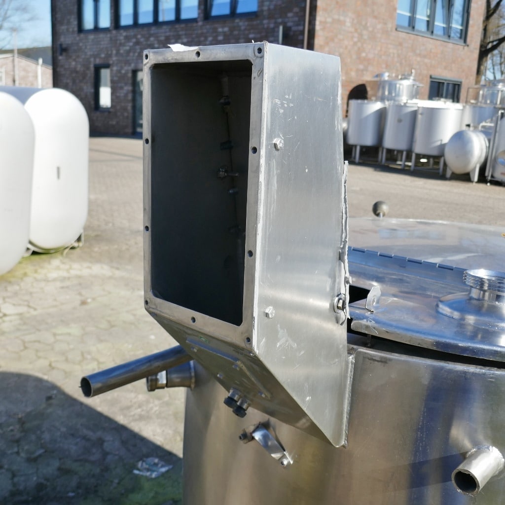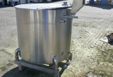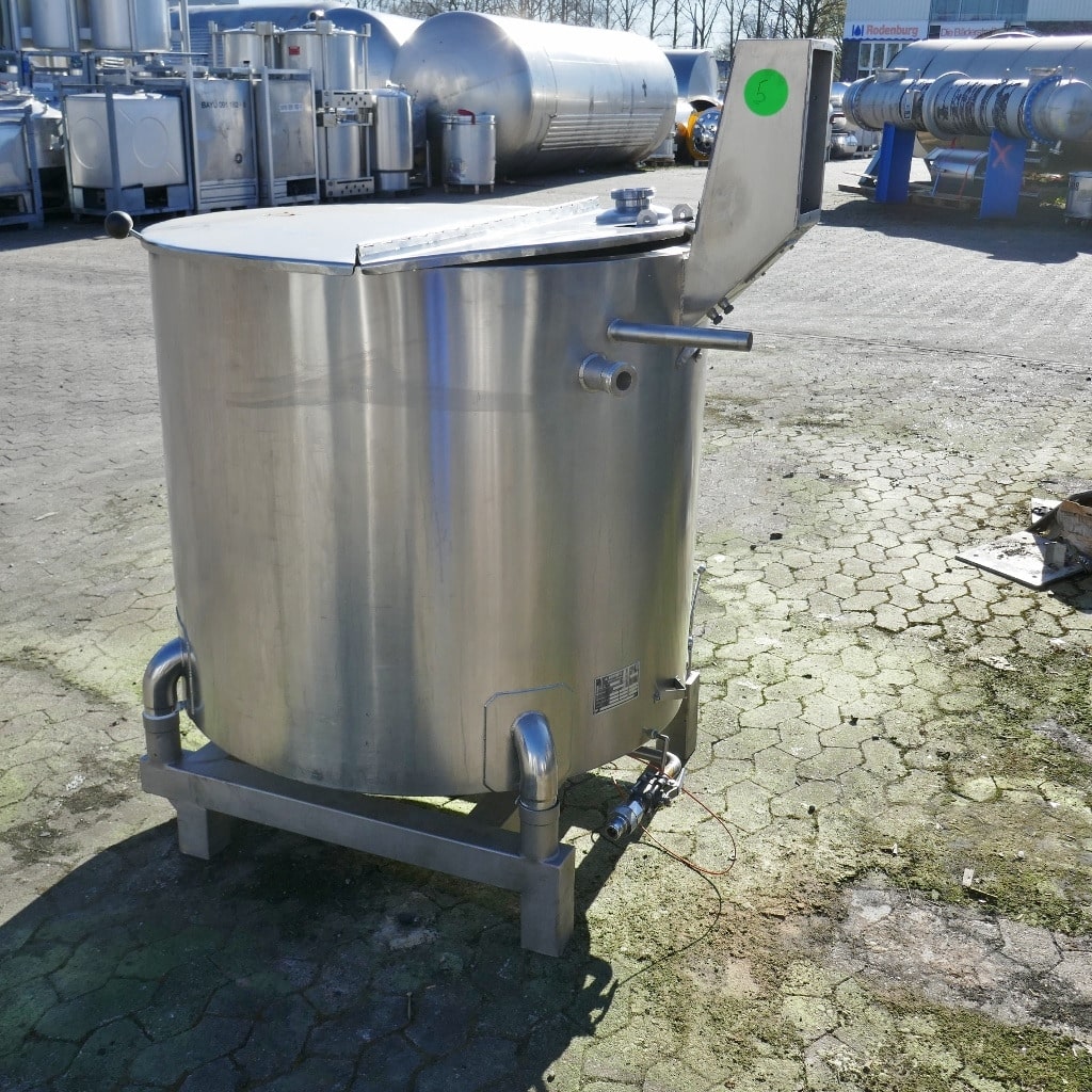 Pharmacy; 4-legged frame, Aisi 304; tank lid with folding segment (slightly warped; therefore not currently screwed); we can’t give any guarantees about the heating/cooling jacket