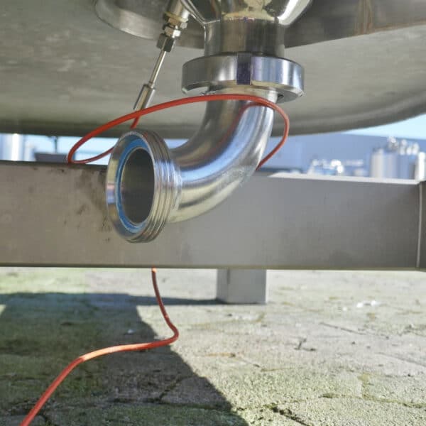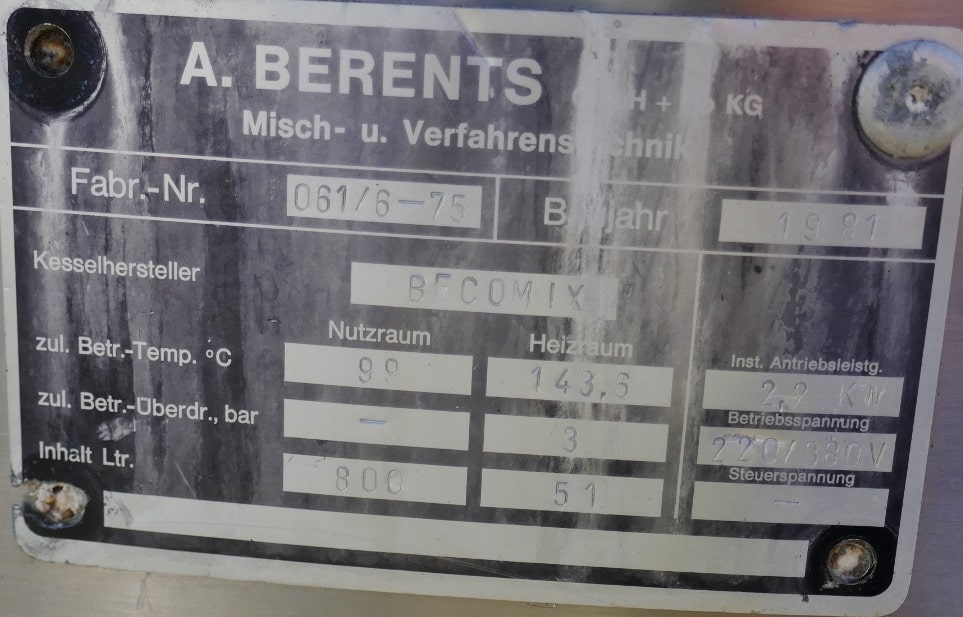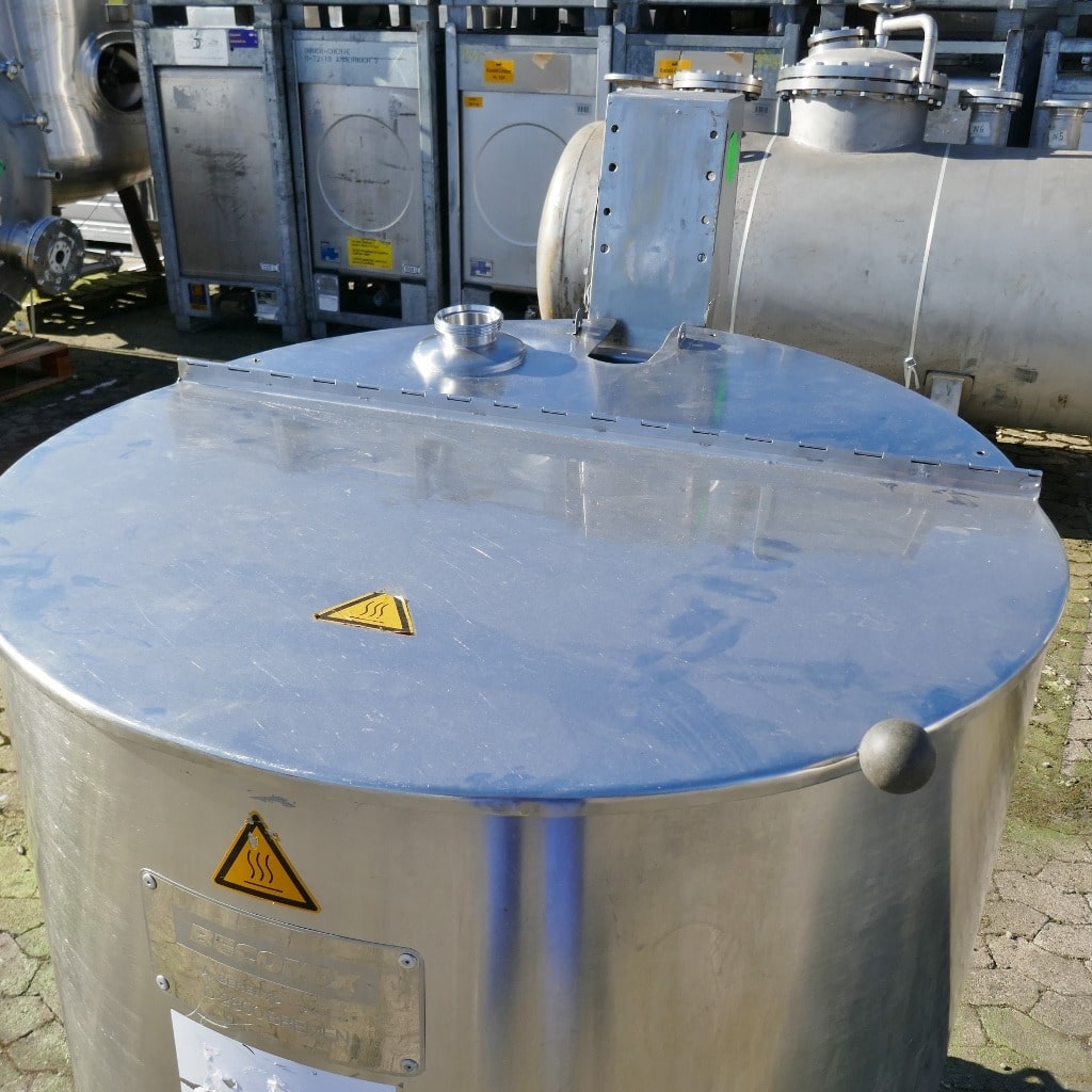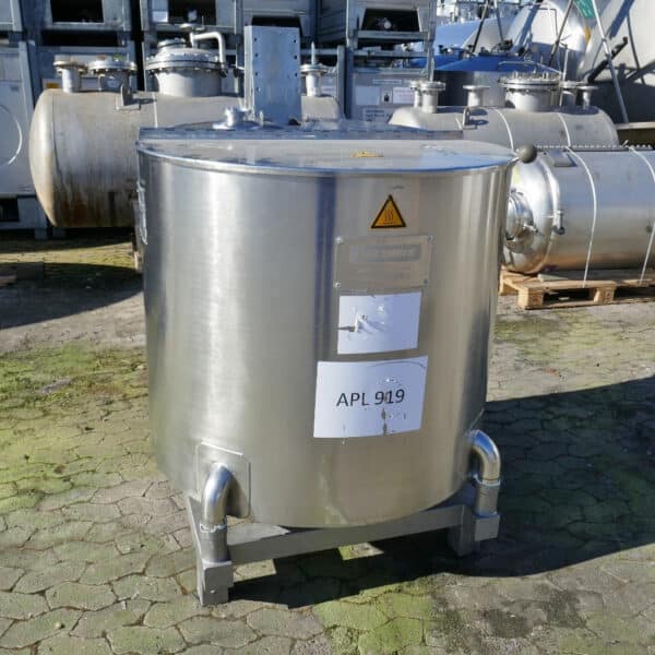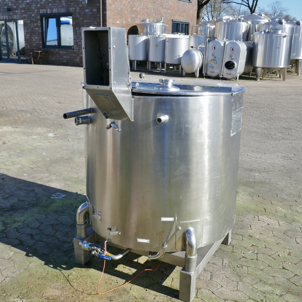 Pharmacy; 4-legged frame, Aisi 304; tank lid with folding segment (slightly warped; therefore not currently screwed); we can’t give any guarantees about the heating/cooling jacket
