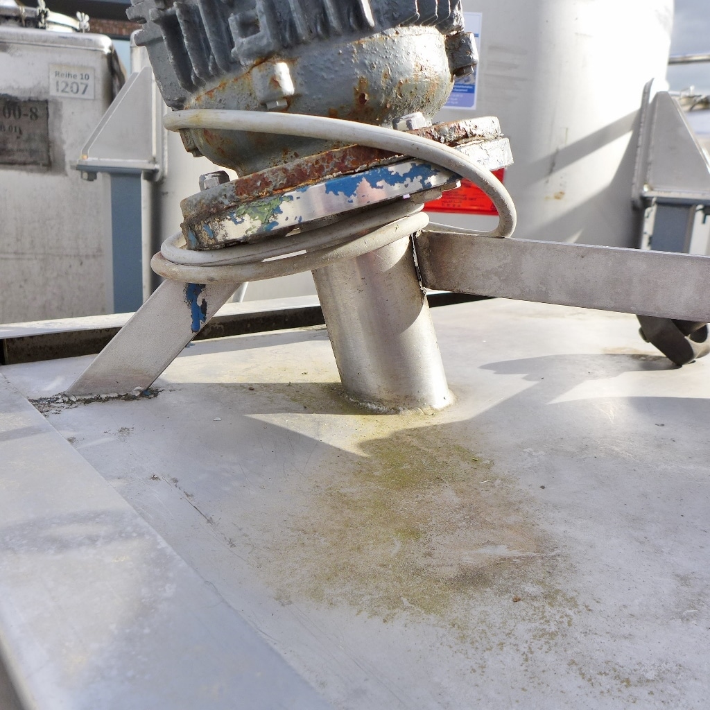 Yeast produktion; Frame, Aisi 304; handle of the butterfly valve slightly bent; 1 brace of the agitator flange cracked (see photos) ; traces of usage; we can’t give any guarantees about the agitator
