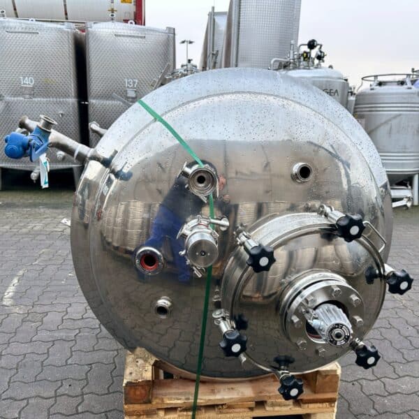 pharmacy; Name plate not available anymore: according to last user the tank and jacket was vakuum and pressure rated; frame made of Aisi 304; electrical level indicator only in the under bottom (no