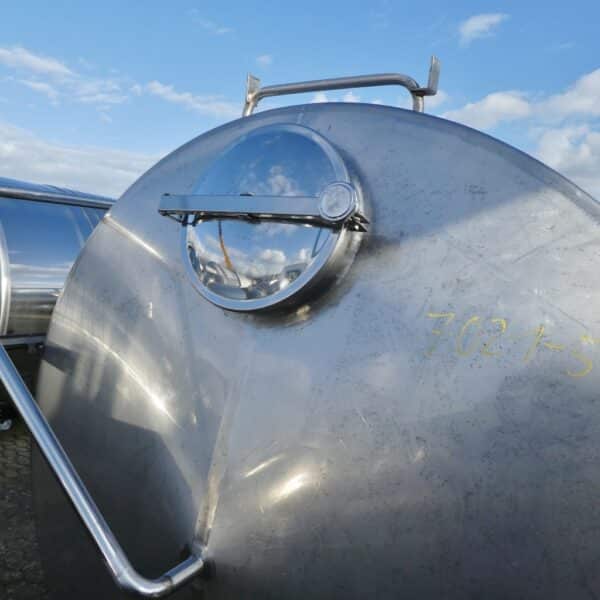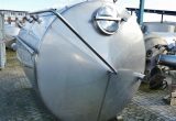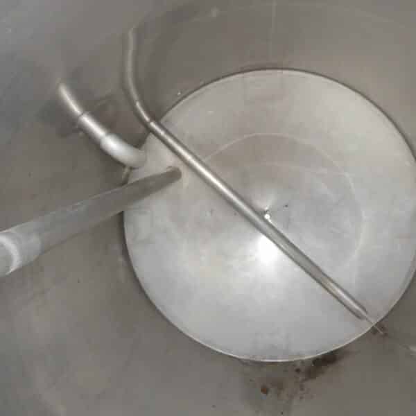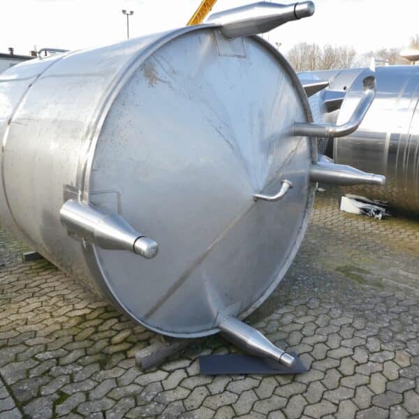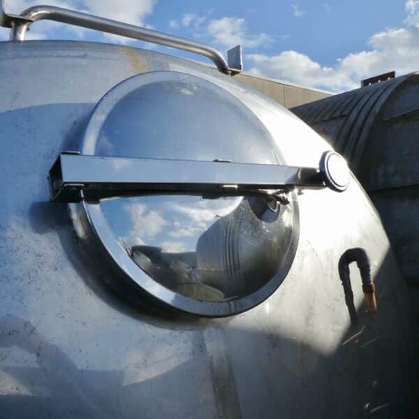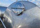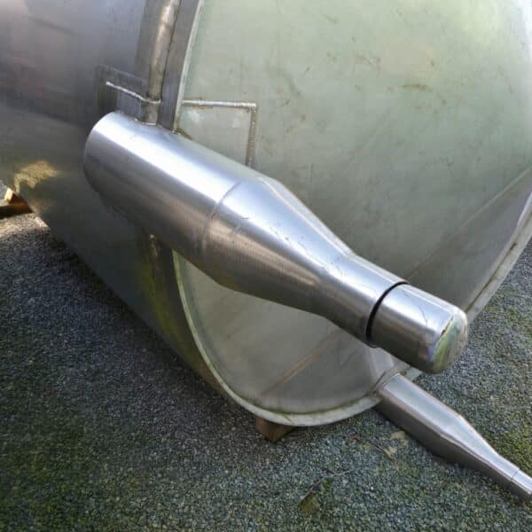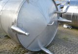 Cip-tank in a brewery; pipelines inside the tanks; in the case of one tank the outlet is cut off; the other tank was re-welded in several places on the central cylinder weld ; some residues of