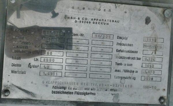 chemistry; 1 tank with a dent in the cylindrical part as well as in the fan guard of the agitator motor; some residues of previous content; we can’t give any guarantees about the agitator