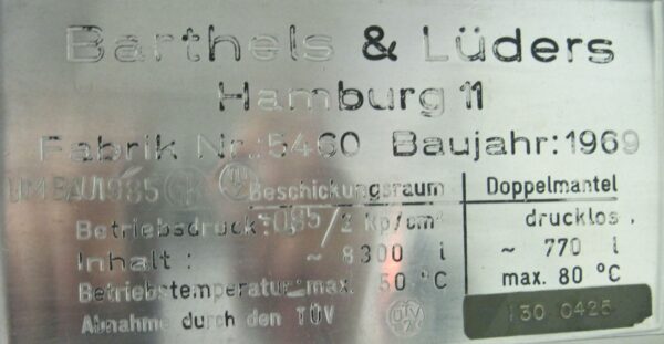 Herbal pharmacy; Durchmesser Mannloch 510 mm; some residues of previous content;manhole cover is missing; we can’t give any guarantees about the heating/cooling jacket; we can’t give any guarantees