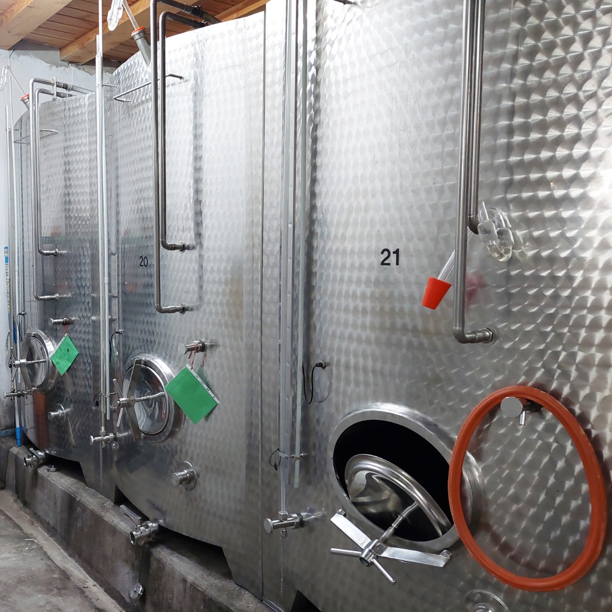 Additional information: wine; Cooling through internal cooling plate; manhole available in the front floor; container photos may show similar constructions and not the exact container; Volumetric volume (L): 8.310 L Pressure in tank: ATM - atmosferic Material wet parts: SS AISI 304 (V2A) Model: vertical Configuration: single jacketed with heat-exchanger Heat exchanger: yes Insulation: no Mobile tank: no Total discharge: no Documents included: no Technical drawing included: no Registration plate on the tank: no Flange for agitator: no Total height of tank: 2.400 mm Total outer width: 1.400 mm Total outer length: 3.100 mm