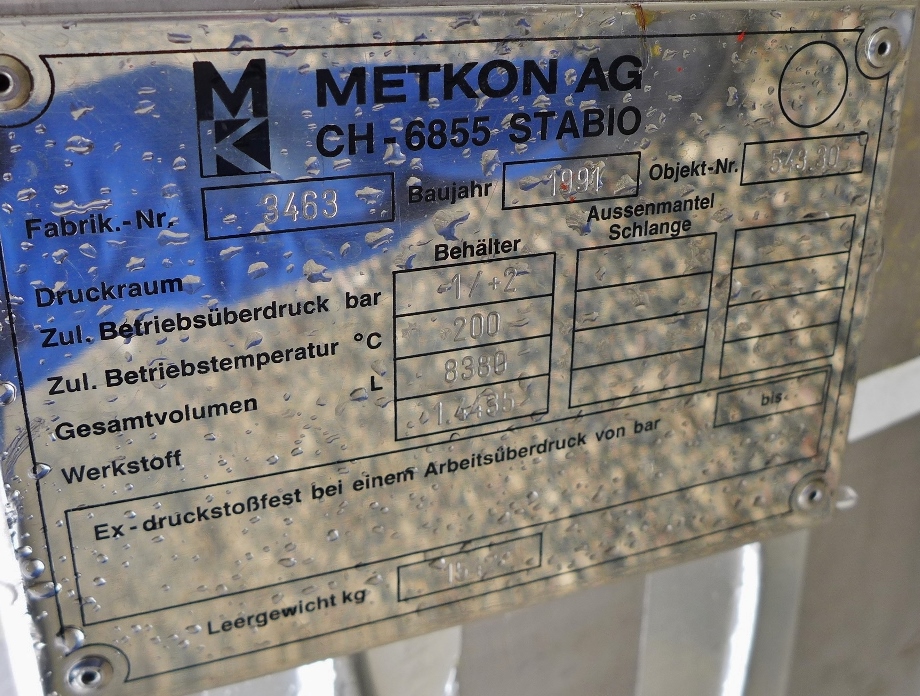Pharmaceutical Chemistry; External heating cables without controls; 3 support brackets, Aisi 304 (1 support bracket was cut off during disassembly and is enclosed loose); more technical documents